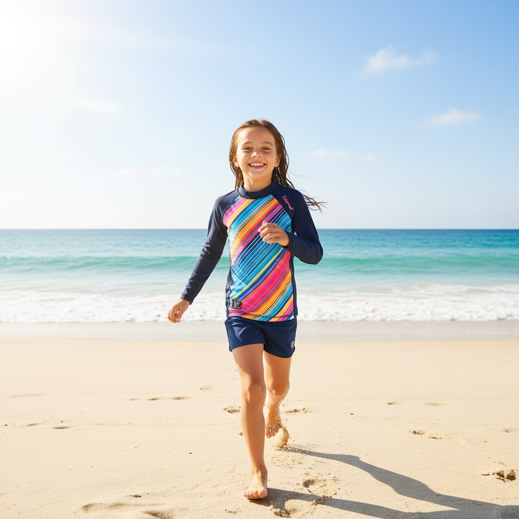 FULLSAND Playera Rashguard Manga Larga Niña Con Protección Solar Certificada.