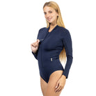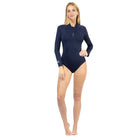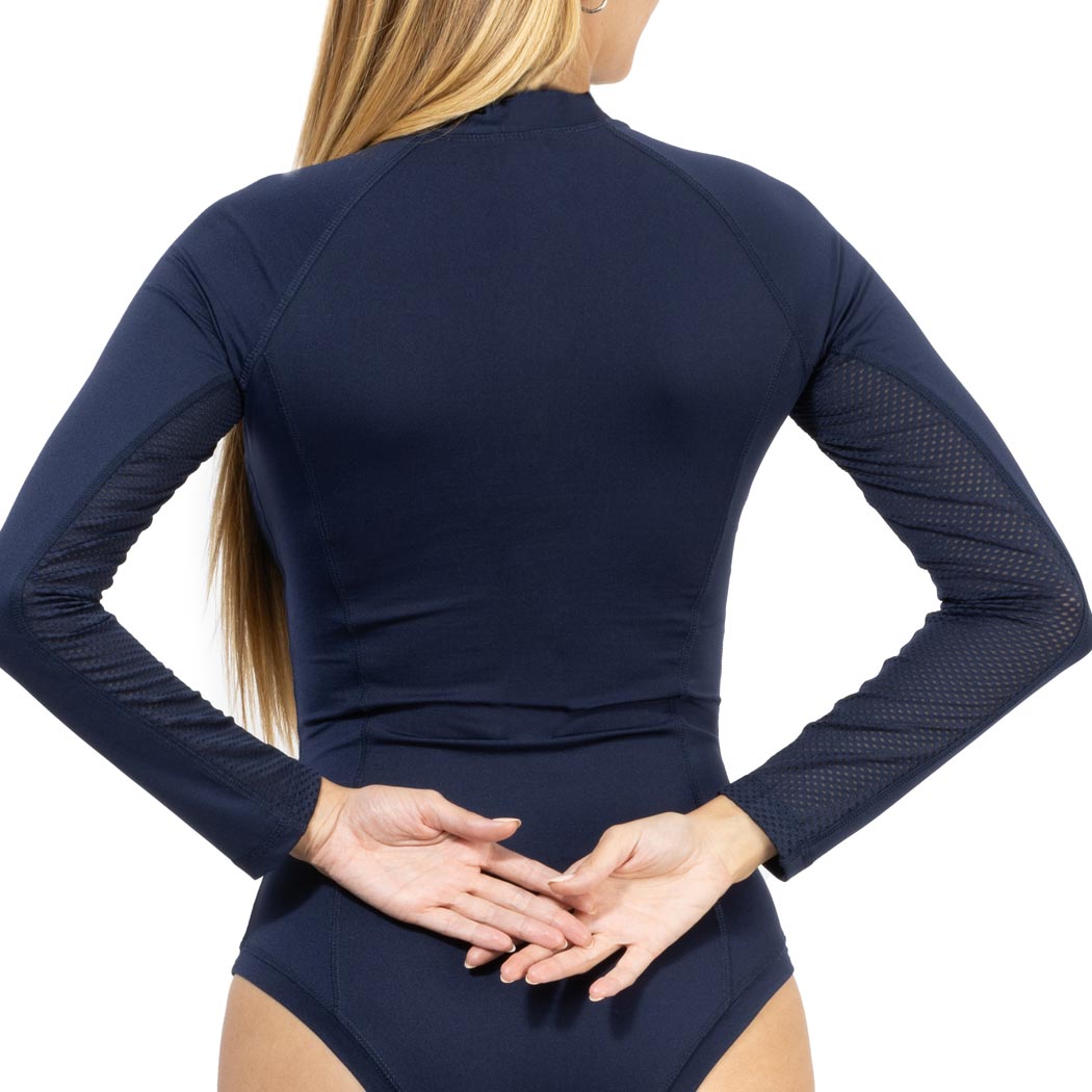 Que en estas vacaciones, puedas lucir espectacular mientras cuidas tu piel de los rayos solares, por eso te presentamos esta Wetswim para dama en color elegante marino, liso, con cierre en frontal, de manga larga, en el interior cuenta con forro en el frente para mejor soporte y comodidad en todas tus actividades ya sea en la playa o la alberca, cuenta con nuestra recomendación UPF50+ que mantendrá tu piel protegida de los rayos solares que pueden dañar tu piel. Confeccionada de tela fresca, suave y ligera que no guarda olroes esta prenda también es de secado ultra rápido.