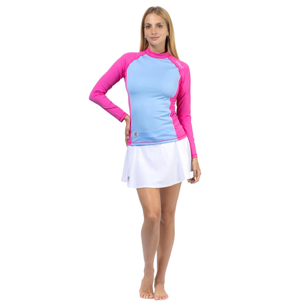 Luce y rinde al máximo con esta skort tenista para dama, ideal para cualquier actividad al aire libre o acuática. Con tecnología UPF50+ y tela de secado rápido, combina estilo y funcionalidad: corte circular tipo tenista, pretina ancha con jareta interna para ajuste perfecto, short interno de lycra con bolsa oculta y franjas laterales de tela respirable. Disponible en blanco y varios colores. ¡Comodidad, libertad y estilo en cada movimiento!