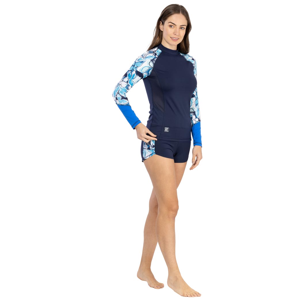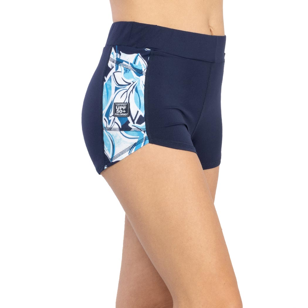 Básico para tus vacaciones o paseos por la playa o fiestas en la alberca, esta prenda será básica para tu outfit, en color marino con pretina alta, ajuste perfecto a tu cuerpo, laterales en tela sublimada motivo Blue, de tela fresca, suave y ligera que no guarda olores, recomendado para actividades acuáticas, también es de secado ultra rápido, cuenta con nuestra recomendación UPF50+ que mantendrá tu piel protegida de los rayos solares y UV dañinos, cuenta con una bolsa en lateral para que puedas portar tu celular o algún objeto pequeño básico como llaves o dinero.