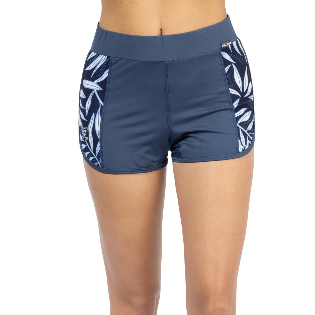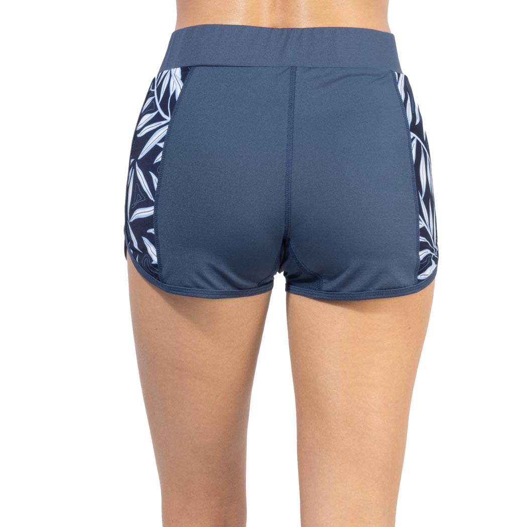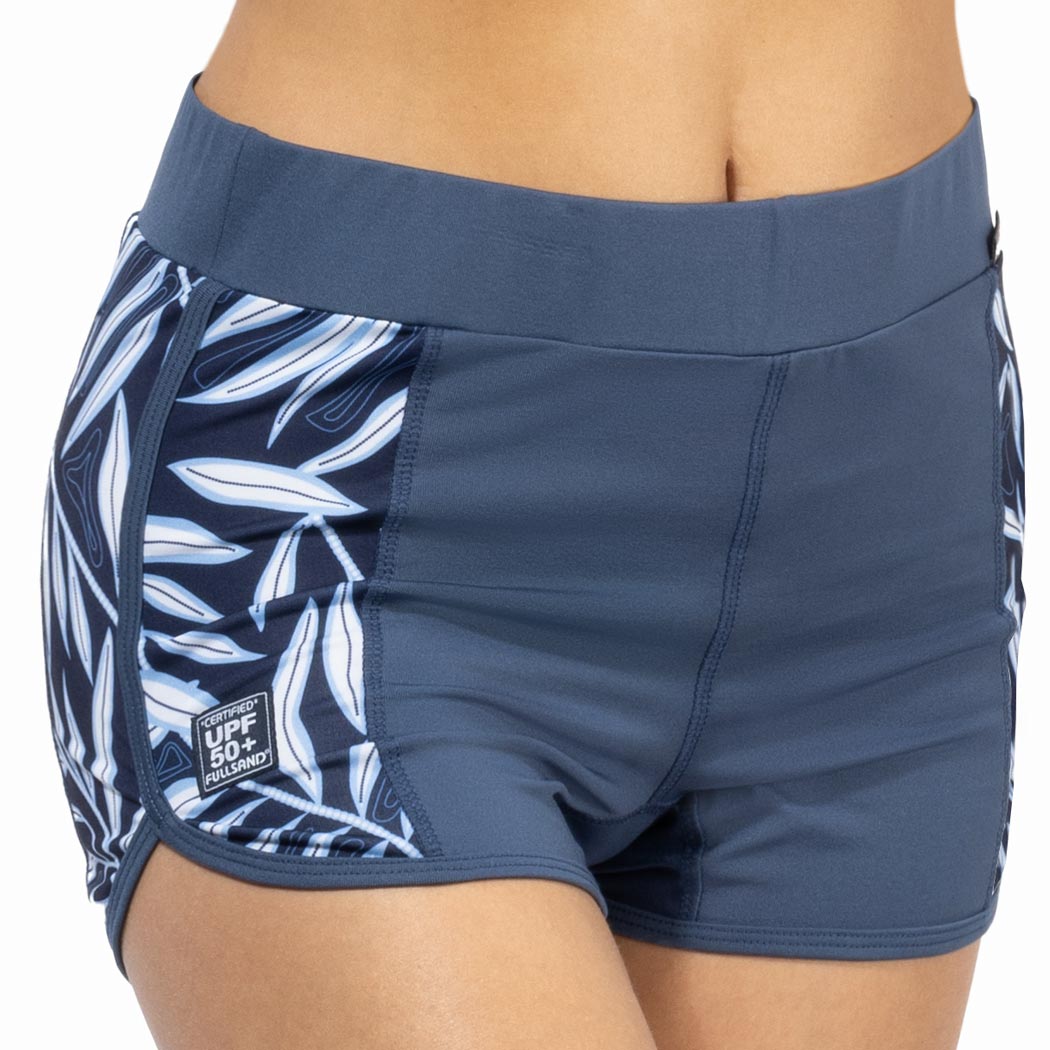 Esta prenda te hará lucir fantástica en tus próximas vacaciones a la playa o la alberca con este bóxer para dama en color azul acero, de tela sublimada estampada en laterales con motivo Peciolo Lycra, es una práctica prenda que cuenta con nuestra certificación UPF50+ que mantendrá tu piel protegida de los rayos solares, confeccionada de tela fresca, suave y ligera esta super recomendada para actividades acuáticas, es de secado ultra rápido y no guarda olores.