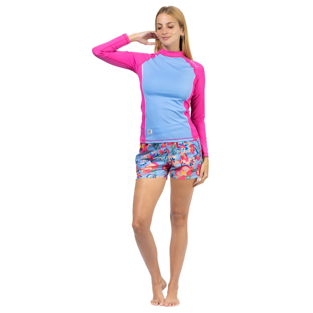 Descubre el short estampado para dama con diseño exclusivo Amazonas, ideal para cualquier actividad acuática gracias a su tela de secado rápido y ligereza. Cuenta con pretina elástica y jareta ajustable en cintura para un ajuste cómodo y personalizado, además de prácticas bolsas laterales con vivos en contraste que aportan un toque moderno. Su abertura en costados no solo mejora la movilidad, sino que realza su estilo deportivo y femenino. Perfecto para playa, alberca o deportes acuáticos.