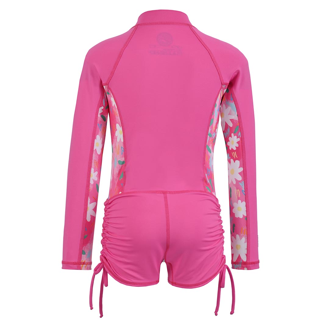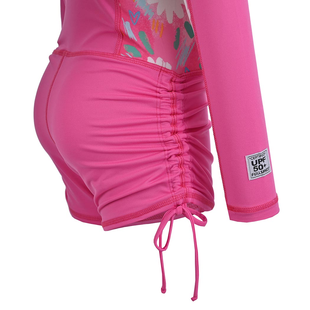Que tu hija se divierta a lo grande mientras ambas disfrutan de las vacaciones en la playa o la alberca, por eso te recomendamos este Body para niña en color vivo rosa, con cierre en el frente en color blanco, de tela sublimada multicolor con motivo Floral Charm en laterales y mangas inferiores, cuenta con elevadores laterales en piernas, para mejor ajuste, esta prenda cuenta con nuestra certificación UPF 50+ que mantendrá la piel de tu hija protegida de los rayos solares, recomendado para actividades acuáticas, esta prenda es de secado rápido de tela fresca, suave y ligera que tampoco guarda olores.