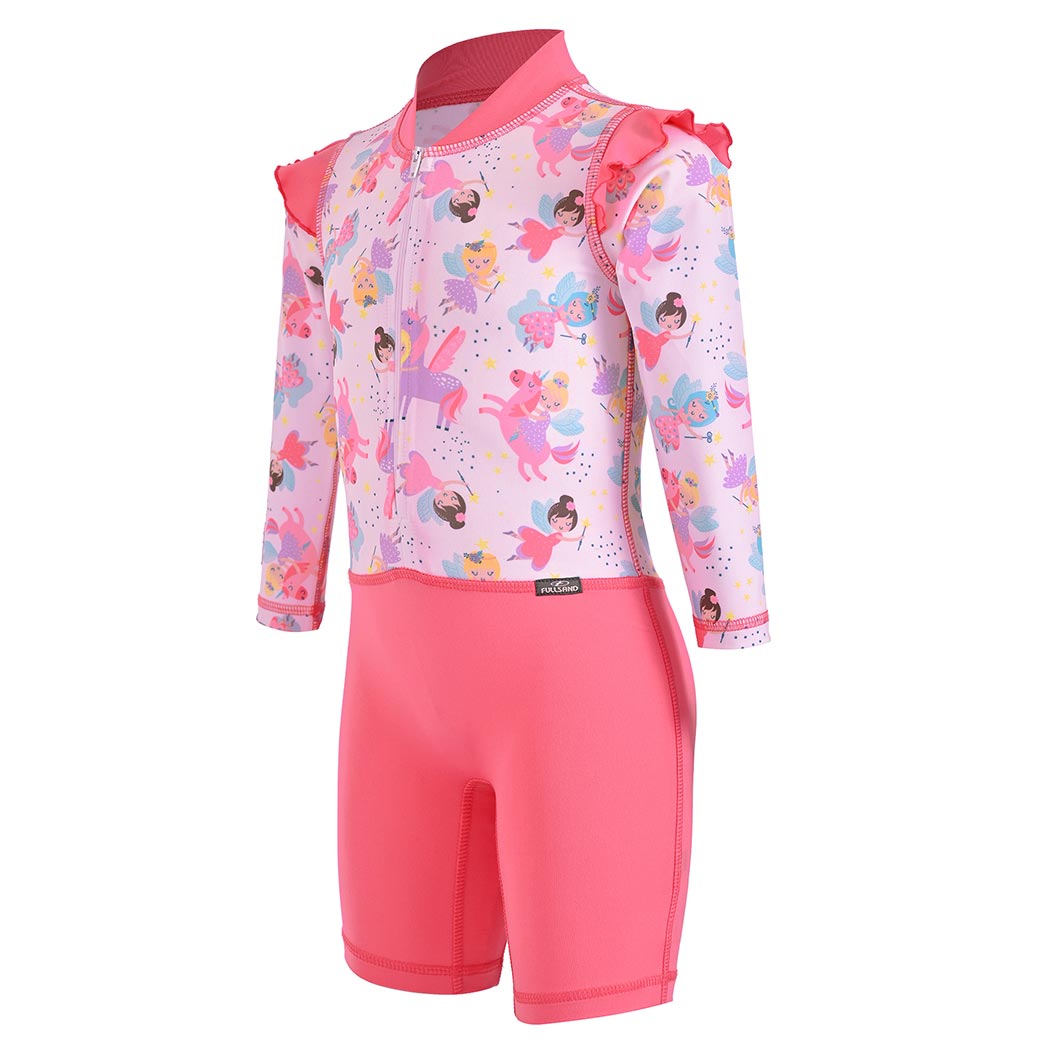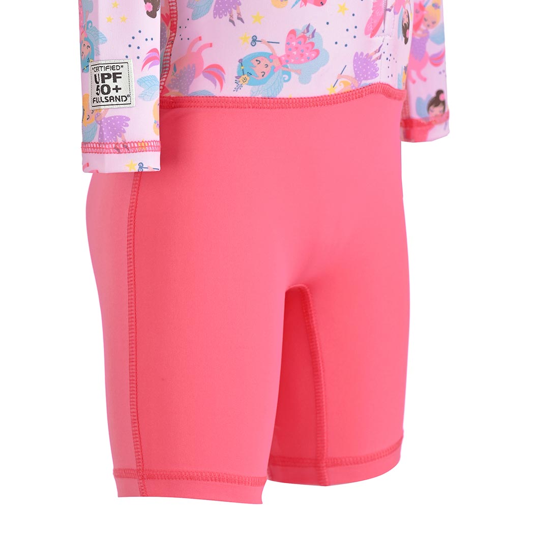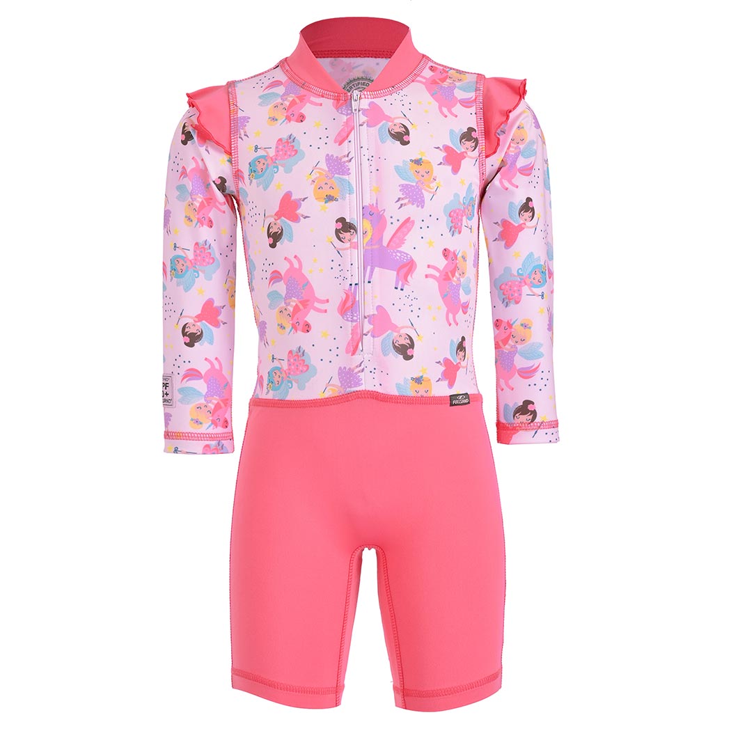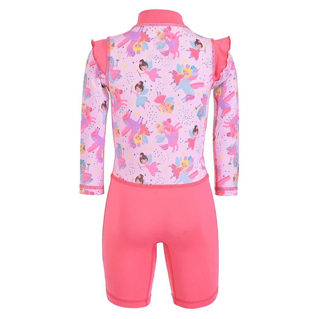 Descubre el body ideal para proteger a tu pequeña con estilo: de manga larga, corte ajustado y certificado UPF50+, es perfecto para cualquier actividad al aire libre o en el agua. Su encantador estampado de hadas cubre el frente, la espalda y las mangas, mientras que los olanes decorativos y los detalles en tela lisa en cuello y short simulado le dan un toque tierno y sofisticado. Incorpora un cierre frontal en color blanco para mayor practicidad y una etiqueta TAB bordada con logo en el costado izquierdo. Disponible en tallas 3 y 4 años, combina comodidad, protección solar y un diseño adorable.