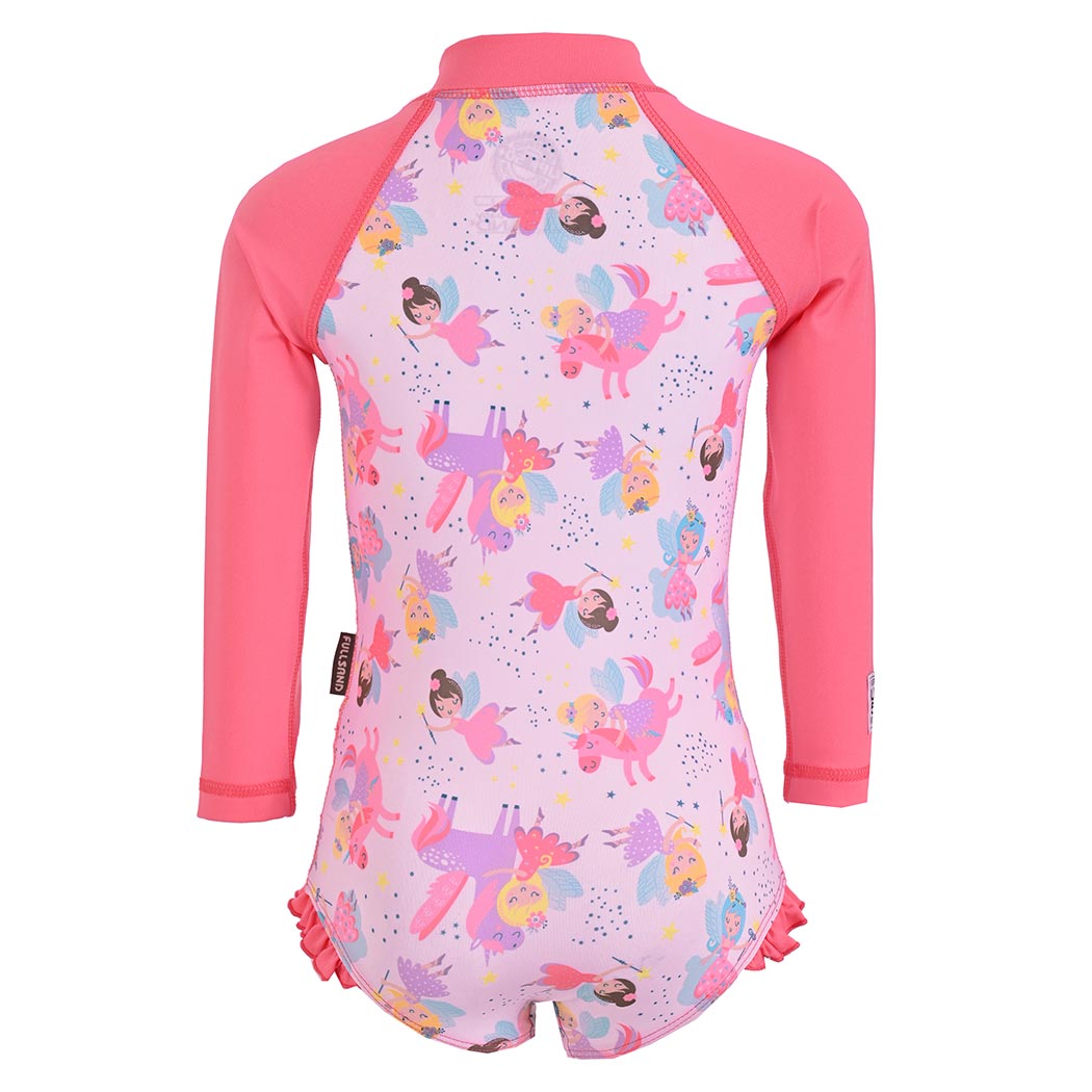 Nuestra wet swim para bebé niña es la prenda ideal para combinar protección, confort y un diseño encantador en cada día de sol. Con manga larga, corte ajustado y tela de secado rápido, está certificada con protección solar UPF50+, lo que la hace perfecta para actividades al aire libre y acuáticas. Luce un tierno estampado de hadas en el delantero, espalda y calzón, con mangas y cuello en tela lisa que contrastan con delicadeza. El detalle de olanes en las piernas aporta un toque femenino, mientras que el cierre frontal en color blanco facilita su uso. Incluye etiqueta TAB bordada con el logo en el costado. Disponible en tallas de 3 a 4 años.