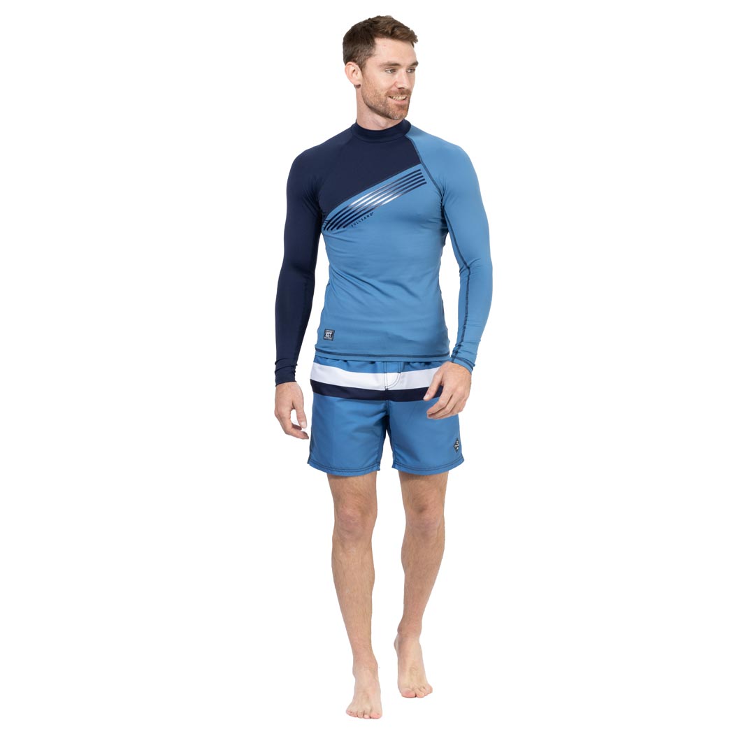 Te presentamos esta bermuda para caballero, para esos paseos por la playa o las fiestas en la alberca, con resorte y jaretas en cintura para un mejor ajuste, en color azul denim, esta prenda cuenta con franjas horizontales con motivo blueline, tiene bolsas laterales y cuenta con bolsa trasera que tiene velcro y cuenta con perforación para drenar agua, cuenta con calzón de tela calada en el interior que te dará mayor confort en todas tus actividades, con nuestra certificación UPF50+ que mantendrá tu piel protegida de los rayos solares.