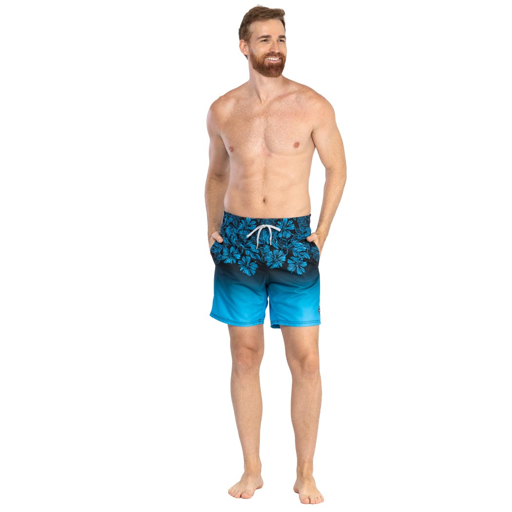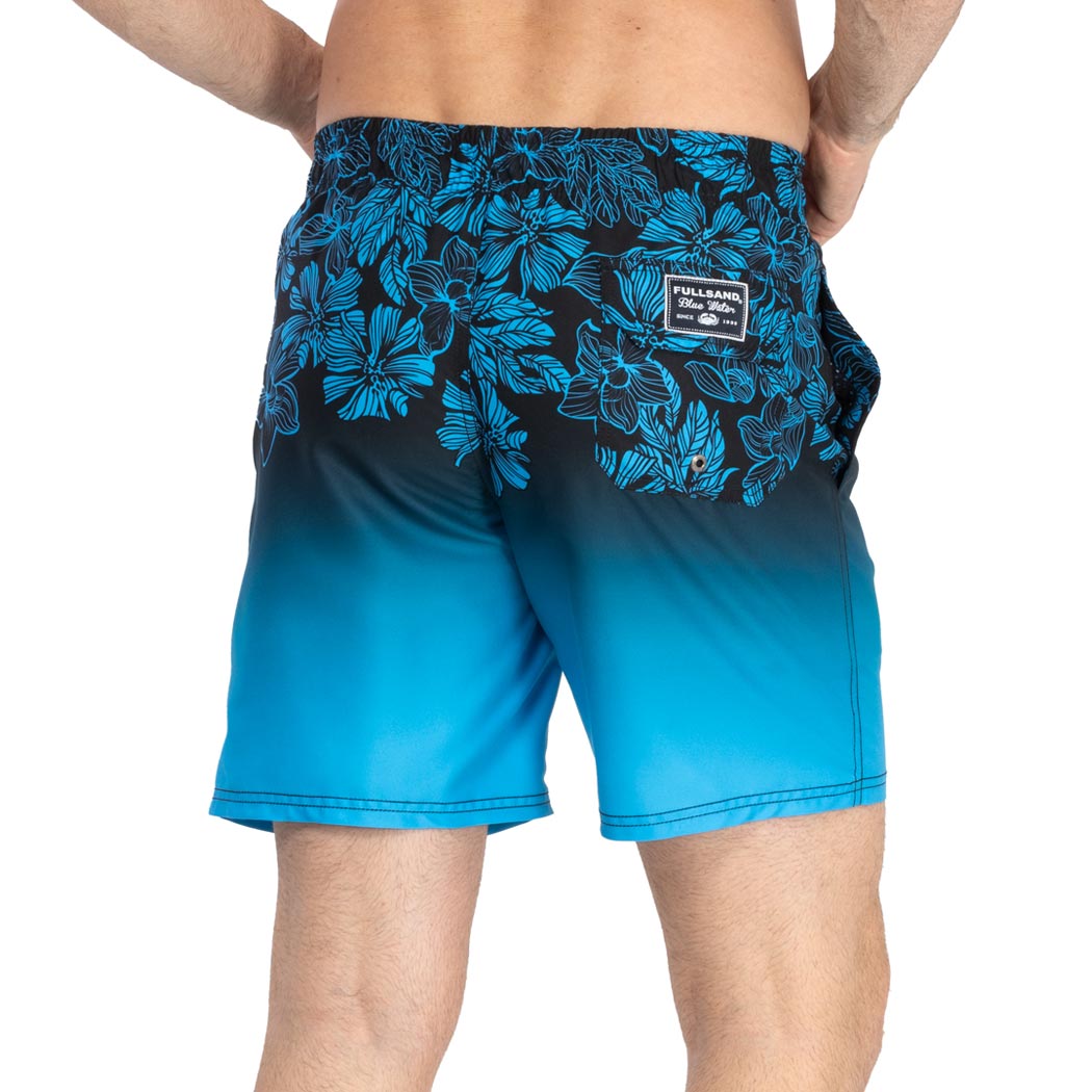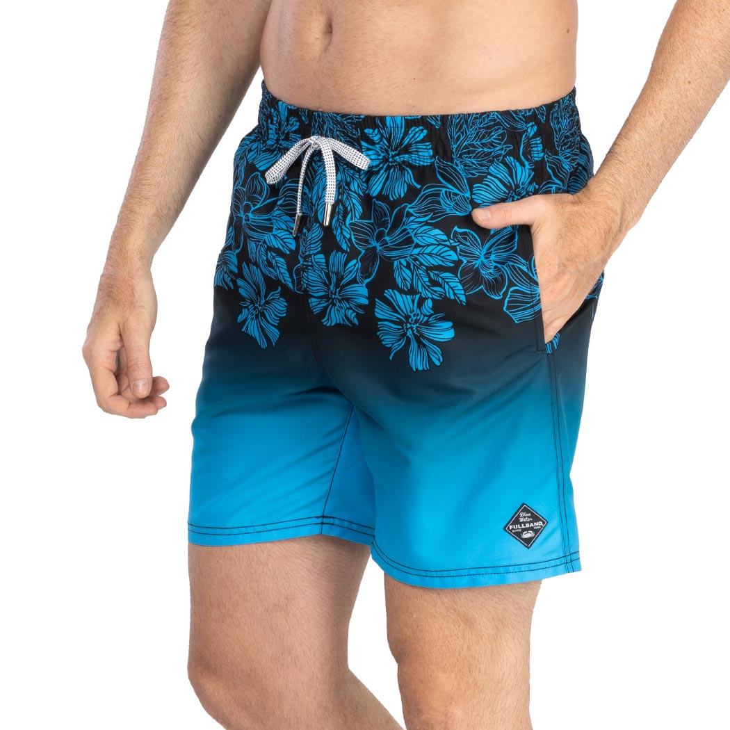 Bermuda para caballero, sublimada en colores ultramar con motivo Tropicale, jaretas en contraste, con etiqueta bordada en pierna izquierda de nuestra firma Fullsand®, con bosas laterales y bolsa en parte trasera con perforación para drenar el agua, cuenta en el interior con calzón de tela calada para un mayor soporte y comodidad en todas tus actividades. De tela fresca, suave y ligera de secado ultra rápido, que no guarda olores, además cuenta con nuestra recomendación UPF50+ que mantendrá tu piel protegida de los rayos solares.