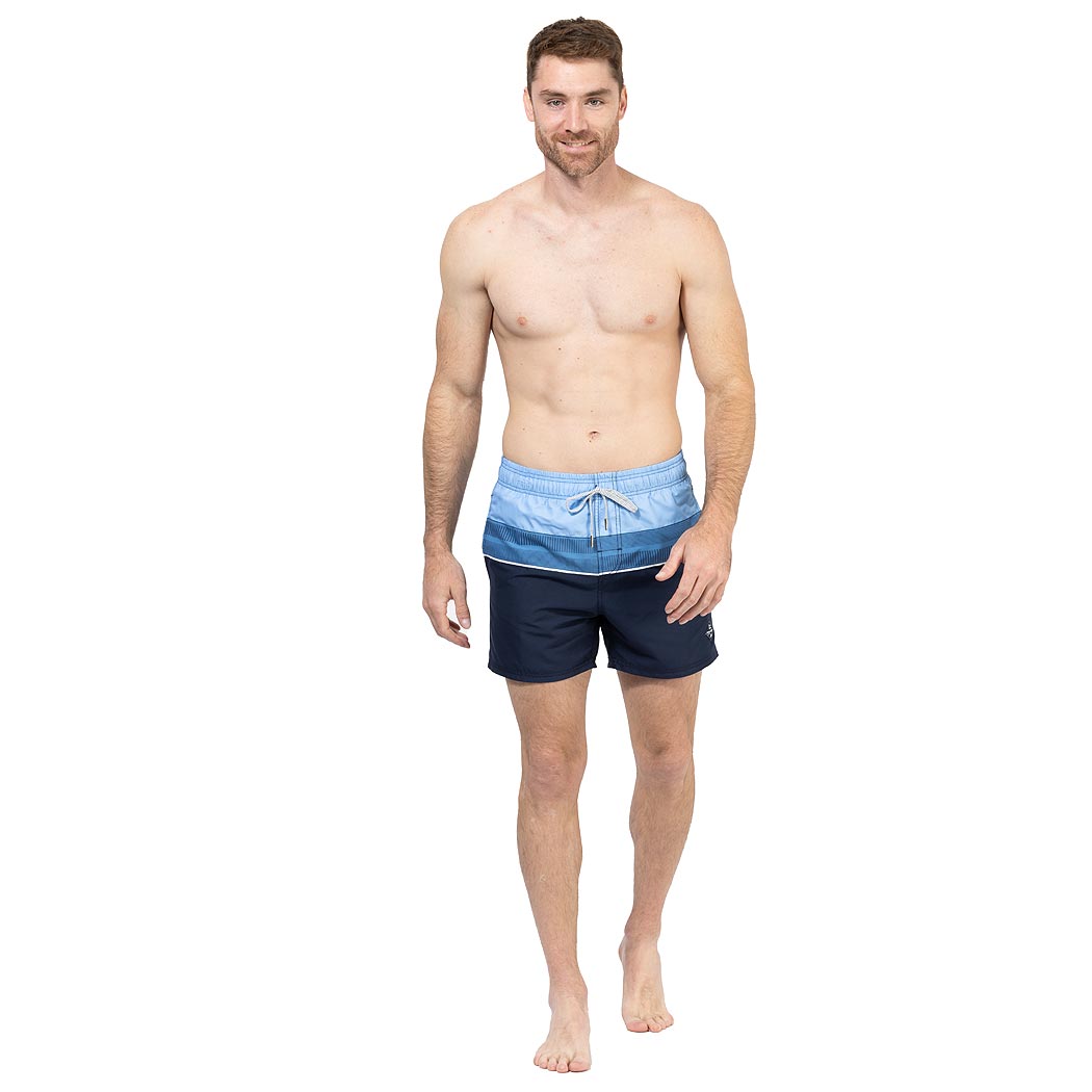 Te super recomendamos este short para caballero, en color marino con viva linea horizontal en color blanco y sublimado de franja horizontal en toda la prenda en color Acero y azul claro, con jareta en cintura, bolsas laterales y bolsa trasera que cuenta con velcro y perforación para drenar agua, esta prenda tiene calzón de tela calada en el interior para mayor comodidad y soporte en todas tus actividades, de tela fresca, suave y ligera esta prenda cuenta con nuestra rrecomendación UPF50+, tampoco guarda olores y es de secado ultra rápido.