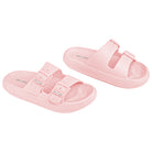 Nueva Sandalia con ligera plataforma. ¡Super cómoda! El material de la suela procura una suave amortiguación al caminar, Logo impreso en suela, disponible en color rosa claro. Duradera e ideal para ambientes con agua y arena.