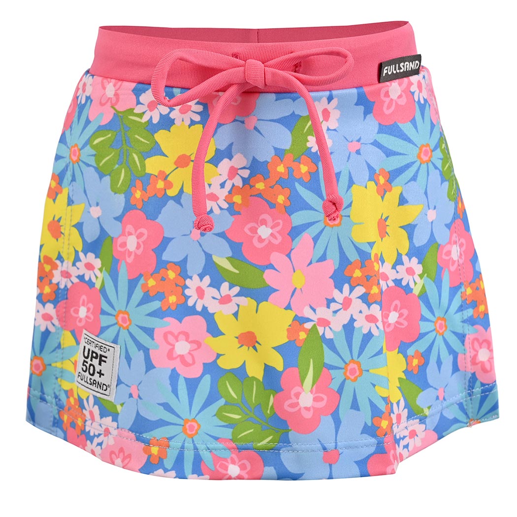 Falda skort diseñada para las bebés que aman jugar bajo el sol. Con protección UPF50+, secado rápido y un corte en línea A que permite total libertad de movimiento. Cuenta con calzón integrado, elástico cómodo en la pretina, jareta ajustable y un encantador estampado de jardín en celeste. Detalles premium como etiqueta TAB bordada y costados abiertos completan este diseño funcional y adorable para días de aventura.