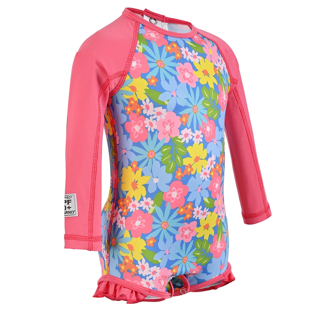 FULLSAND Traje Completo Pañalero Con Broche Bebe Niña Con Protección Solar Certificada.
