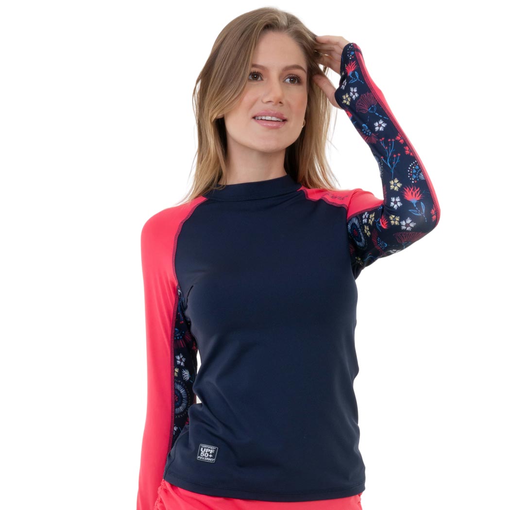 Protección solar en modo diversión. Esta Playera Rashguard de manga larga combina certificación UPF50+ con secado rápido para que disfrutes sin preocupaciones. El logo estampado en el hombro izquierdo y el vibrante diseño Ola Botánica en las mangas le dan ese toque especial. Las aberturas de dedo mantienen todo en su lugar mientras nadas, buceas o exploras. Perfecta para playa, alberca y aventuras bajo el sol. Protección inteligente, estilo garantizado.