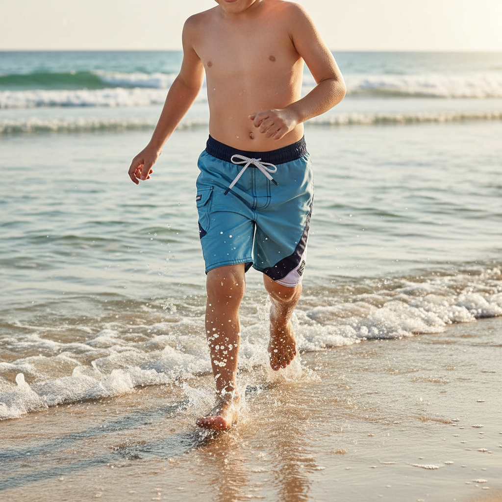 Perfecto para pequeños nadadores, este short de baño largo ofrece secado rápido y diseño pensado en cada detalle. La jareta ajustable con puntas metálicas asegura que se quede en su lugar durante cualquier aventura acuática, mientras que los cortes diagonales en colores contraste en la pierna izquierda le dan personalidad. El calzón interno de tela calada brinda libertad de movimiento, y los bolsillos inteligentes —bolsa oculta interna y parche con velcro en el costado— protegen sus pertenencias. El ojillo para drenar agua completa este traje versátil para piscina, playa y diversión sin límites.