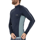 Enfrenta el sol con confianza con esta playera rashguard para hombre de manga larga en color marino, diseñada con certificación UPF50+ que brinda máxima protección contra los rayos UV y tecnología de secado rápido para mantenerte cómodo durante cualquier actividad. Su ajuste perfecto al cuerpo resalta tu figura y favorece la movilidad, mientras los costados en color contraste, las mangas con cortes verticales y los vivos en contraste aportan un toque moderno y deportivo. El detalle de etiqueta bordada con logotipo en el pecho izquierdo completa un diseño funcional y sofisticado, ideal para actividades acuáticas o al aire