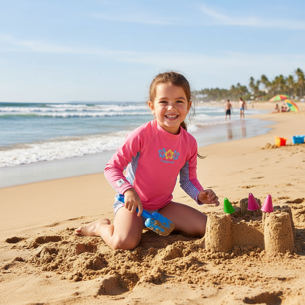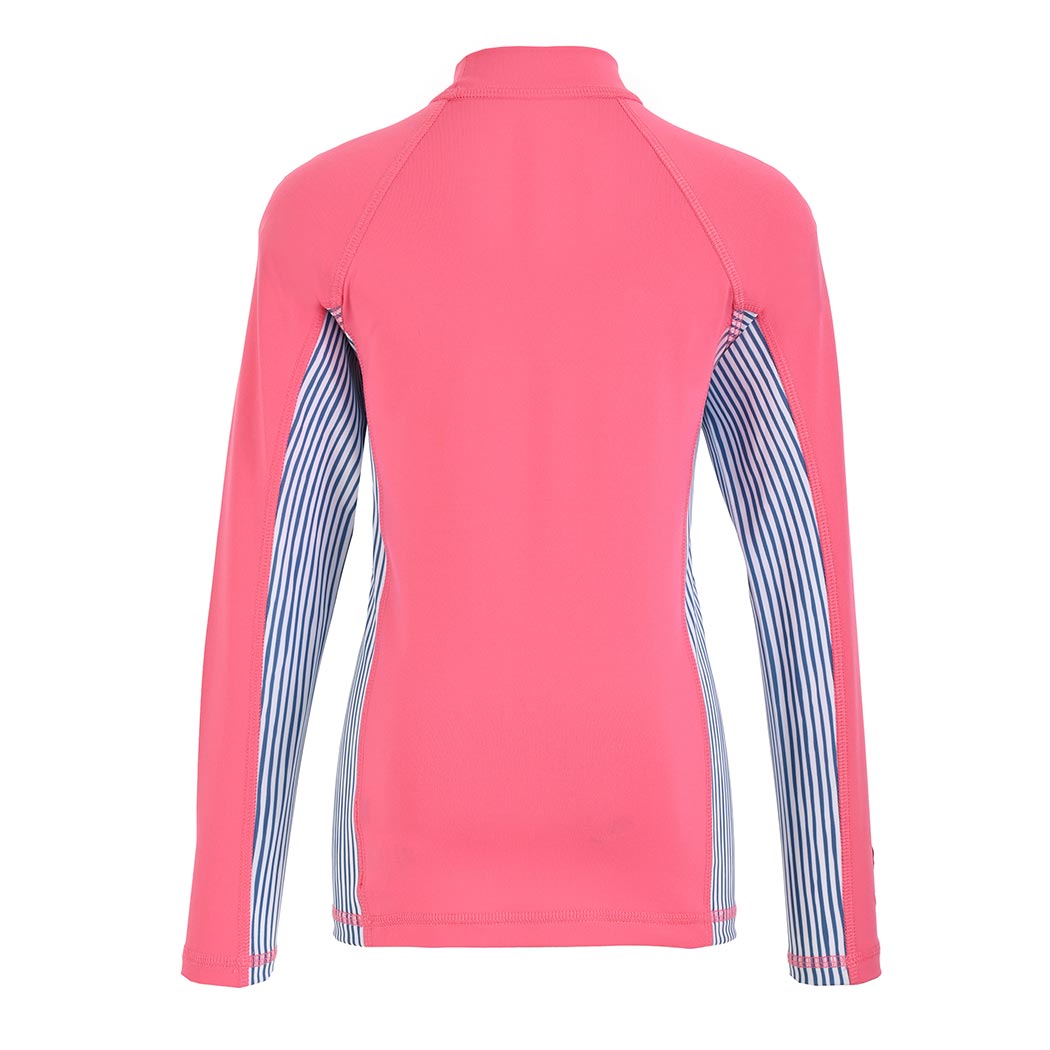 La diversión es lo único que se vale estas vacaciones, por lo tanto te recomendamos esta hermosa prenda para tu hija en color salmón de cuello redondo, mangas largas, con laterales y mangas inferiores con motivo vertical y en el pecho lindo diseño de flores con nuestra firma estampados. Esta prenda cuenta con nuestra certificación UPF50+ que mantendrá la piel de tu hija protegida de los rayos solares, mientras ella se divierte a lo grande en actividades acuáticas, esta prenda esta confeccionada de tela ligera y suave, es de secado ultra rápido, además no guarda olores.