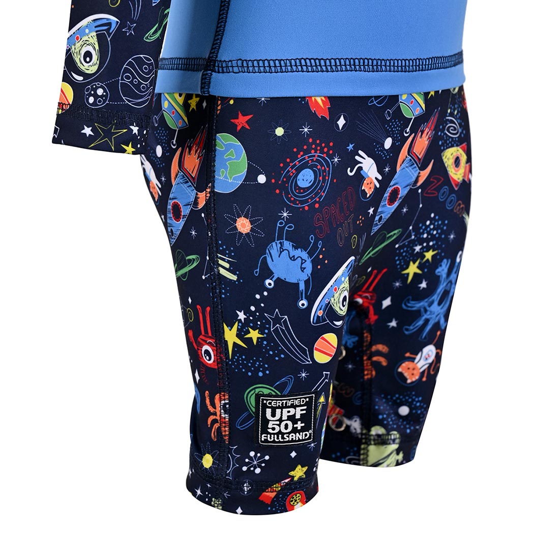 Tu pequeño explorador merece protección y diversión en partes iguales. Este traje de baño ciclista ofrece certificación UPF50+ que defiende la piel delicada contra el sol, mientras los marcianitos estampados en mangas y short despiertan la imaginación. El color Perry vibrante y el logo en el pecho crean un look cósmico irresistible. Los broches de cierre en entrepierna facilitan cambios sin esfuerzo, y la aletilla con broche en escote trasero asegura ajuste perfecto. Tela de secado rápido y corte de short simulado permiten movimiento libre. Seguridad solar dermatológica con estilo aventurero garantizado.
