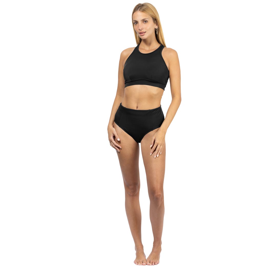 No puedes perderte de este clásico básico, para tus días de playa o en la alberca, te presentamos este calzon liso alto en color negro, que estiliza tu figura y en efecto visual alarga tus piernas, reforzado por el frente, cuenta con control abdominal para acentuar tu figura, esta prenda esta recomendada para actividades acuáticas, y cuenta con nuestra recomendación UPF50+ que mantendrá tu piel protegida de los rayos solares. Esta prenda la puedes combinar con otras prendas altas de nuestra colecciones de Fullsand® o Coralina®. De tela fresca, suave y ligera que no guarda olores y también es de secado ultra rápido