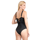 CORALINA Traje De Baño Completo Tirantes Cruzado Negro Mujer CONTROL ABDOMINAL.