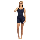 Moldea tu silueta con seguridad y confort usando nuestro traje de baño tipo short para mujer en color azul marino, diseñado con retina alta para estilizar la figura, control abdominal y cobertura total hasta la mitad del muslo; confeccionado en resistente fibra de nylon plus, cuenta con tecnología de secado rápido y protección UV UPF50, ideal para disfrutar de tus actividades acuáticas con libertad, soporte y estilo.