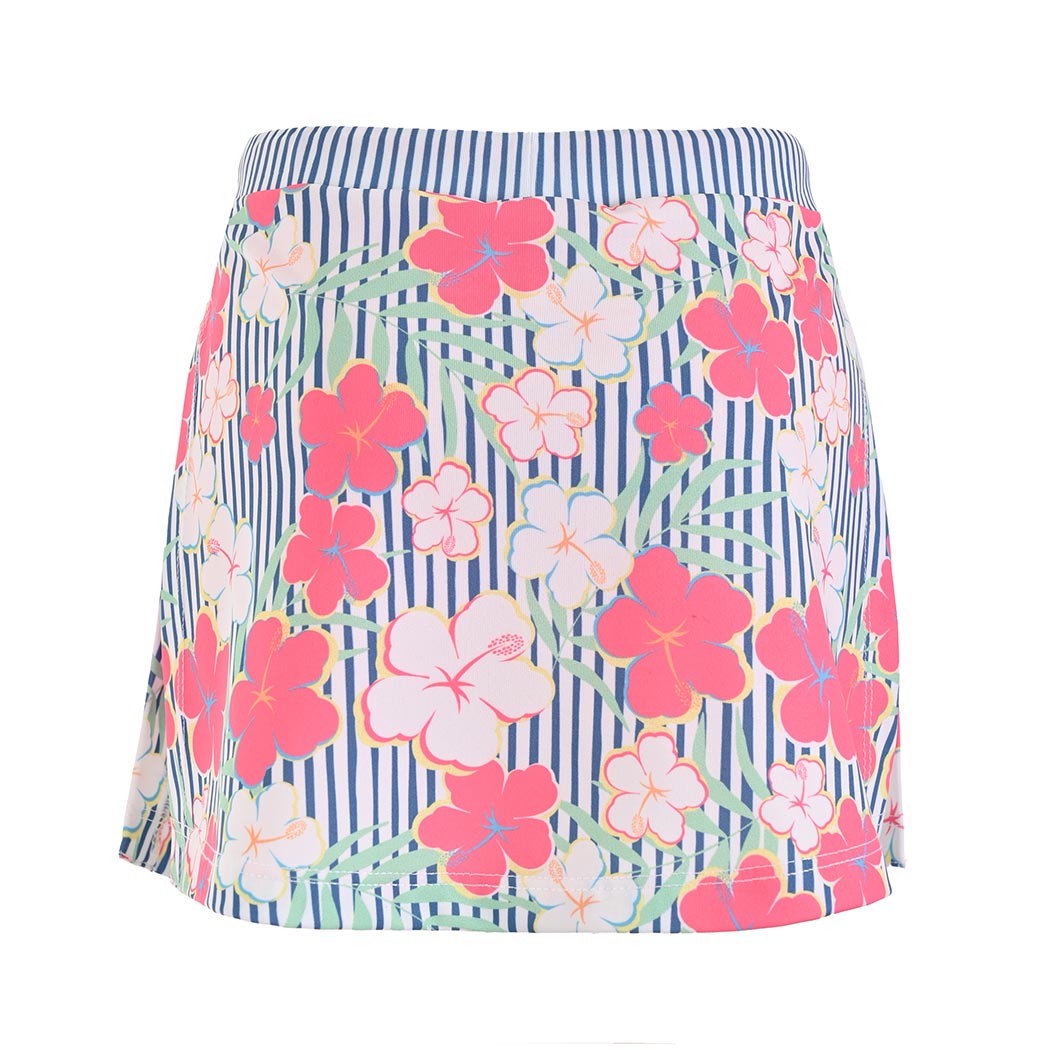 Que estas vacaciones, la diversión no se detenga para tu pequeña. Te presentamos esta coqueta faldita skort que esta confeccionada con tela sublimada motivo Jamaica y en pretina con motivo vertical, las jaretas en lindo color salmón, esta prenda tiene integrado un short debajo, para que realice todos los juegos y actividades super divertidas en la playa o la alberca, como lo desee. Con nuestra recomendación UPF50+, esta prenda es ideal para proteger la piel de tu pequeña, es de tela fresca y ligera que no guarda olores y aparte es de secado ultra rápido.