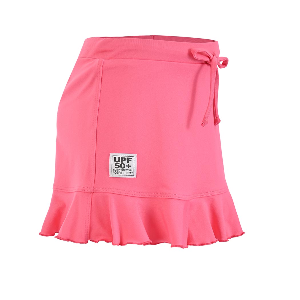 Lindísima falda skort, en color salmón liso, con resorte y jaretas en pretina para un mejor ajuste, con nuestras etiquetas bordadas, una tab con nuestra firma en cintura y la otra con nuestro respaldo UPF50+ que mantendrá la piel de tu hija protegida de los rayos solares, esta prenda además de ser super coqueta, tiene un short integrado debajo, para que tu pequeña solo pueda divertirse a lo grande en la playa o la alberca, recomendada para actividades acuáticas, esta prenda es de tela fresca, suave y ligera que no guarda olores y es de secado ultra rápido.