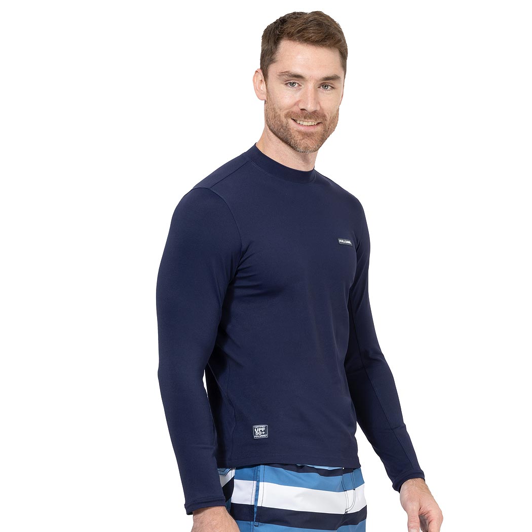 Descubre la nueva playera t-shirt para Hombre en color azul marino, con certificación UPF50+, diseñada para brindar protección solar avanzada en todas tus actividades al aire libre. Su corte relajado y manga larga ofrecen una comodidad superior, mientras que el diseño liso y la etiqueta bordada con logotipo en el pecho añaden un toque moderno y sutil. Perfecta para deportes, caminatas o el día a día, esta prenda combina estilo, comodidad y seguridad. ¡Hazla parte de tu colección para disfrutar del sol con total confianza!"