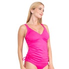 Tankini para dama con elevadores laterales que permiten ajustar el largo para un fit más favorecedor. Sus tirantes ajustables en la parte de atrás brindan soporte personalizado, mientras que el control abdominal estiliza la figura con comodidad. Presenta un corte en V con copas removibles, ideal para realce natural y ajuste adaptable. Confeccionado en una tela fresca, suave y ligera que no guarda olores y es de secado rápido, perfecta para días intensos de playa o alberca. En color rosa, es una pieza femenina, funcional y moderna que acompaña cada movimiento con confort.
