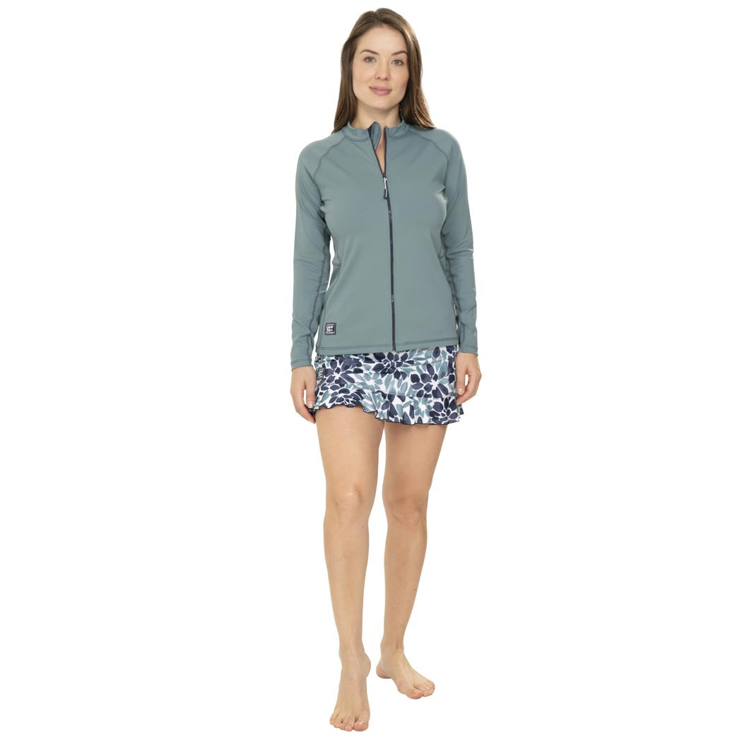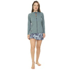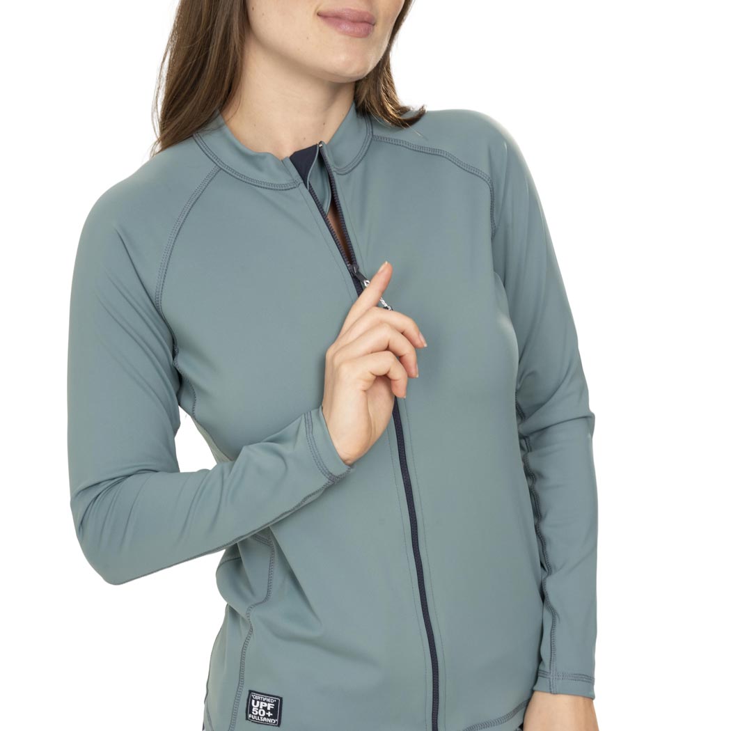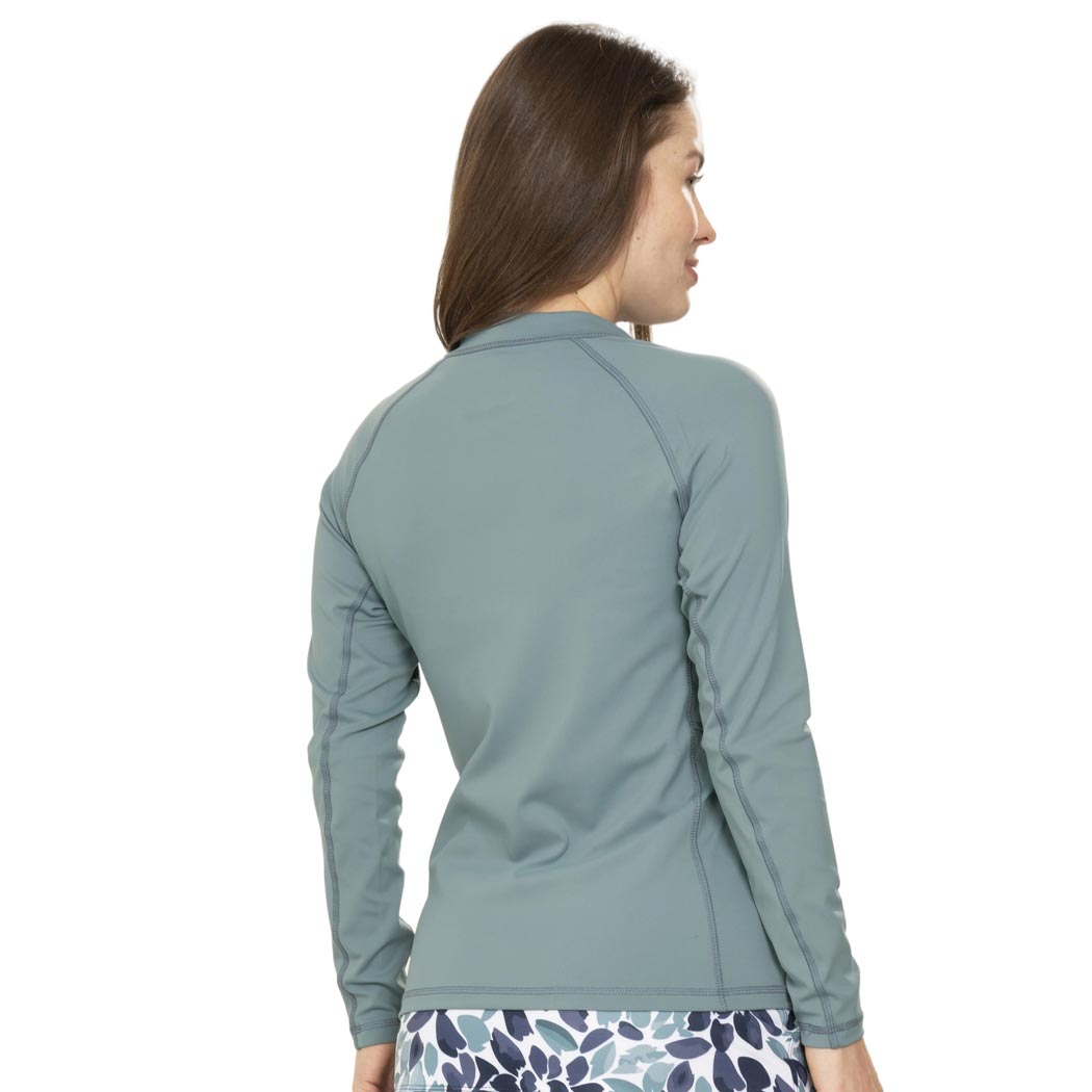 Diversión bajo el sol, piel protegida. Esta playera rashguard femenina cuenta con certificación UPF50+ en un tono cemento minimalista y versátil. Manga larga, secado ultrarrápido y cierre delantero marino que se ajusta a tu ritmo. Diseñada con precisión: etiqueta TAB con logo bordado en costado y cortes estratégicos en cuerpo y mangas para libertad total de movimiento. Tu compañera ideal para playa, piscina o cualquier aventura acuática, con la seguridad de una protección que realmente funciona.