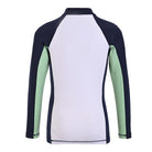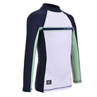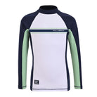 Para este verano te presentamos esta playera wet para niño en color blanco, con cuello y laterales en torso en marino, con franjas horizontales y firma estampada en pecho, con manga inferior en color verde seco, esta prenda puedes coordinarla para que papá e hijo cominen sus outfits playeros, esta prenda esta confeccionada con tela fresca, suave y ligera que no guarda olores, recomandada para actividades acuáticas, es de secado ultra rápido, además cuenta con nuestra certificación UPF50+ que mantendrá protegida la piel de tu pequeño de los rayos solares.