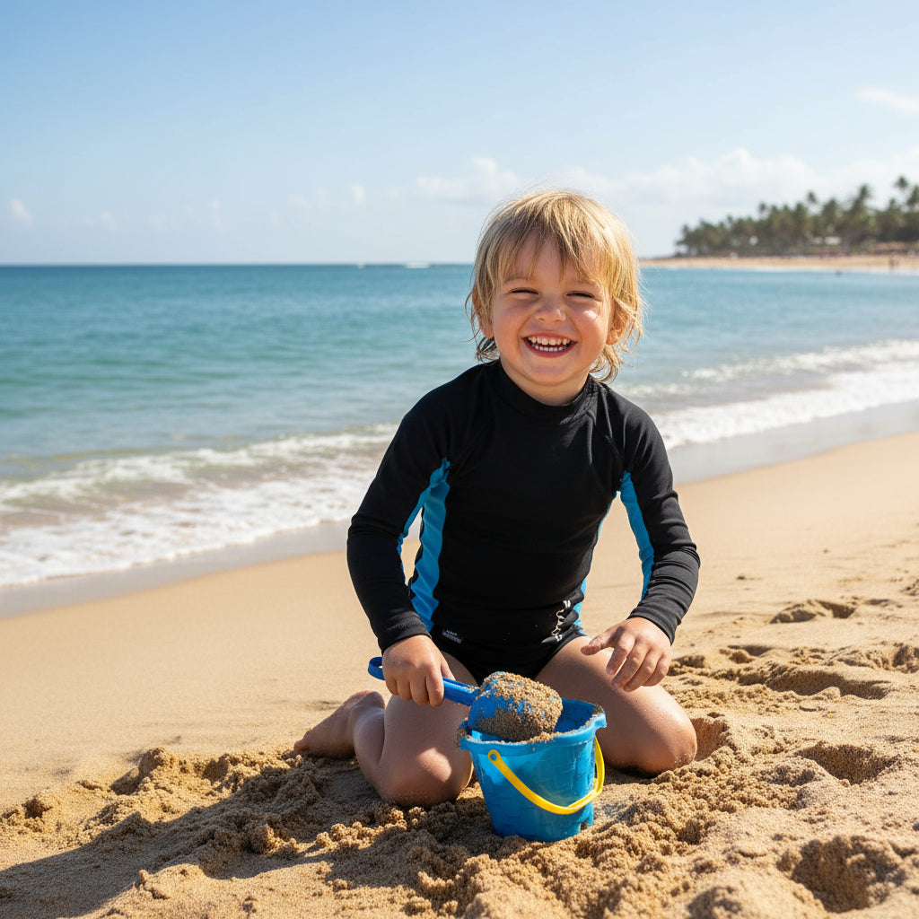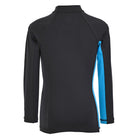 Que estas vacaciones de verano tu hijo pueda disfrutar en grande las vacaciones en la playa o la alberca, que pueda participar en todos los jegos o actividades bajo el sol, te recomendamos esta playera wet, de cuello redondo, mangas largas en color negro con lateral y manga inferiores de lado derecho en color ultramar, con nuestra firma estampada en lado izquierdo inferior, esta prenda cuenta con nuestra recomendación UPF50+ que mantendrá protegida la piel de tu hijo, confeccionada con tela de secado rápido, por lo que es una prenda super recomendable para actividades acuáticas, no guarda olores, de tela fresca, suave y ligera. Prenda súper combinable con las prendas de Caballero para hacer juego con el outfit de papá.