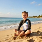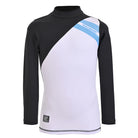 Las vacaciones de verano siempre son super esperadas por los consentidos de casa y para completar su outfit de esos paseos por la playa o la alberca te recomendamos esta wet para niño, de cuello redondo y mangas largas, de corte ajustado, para que mantenga la piel de tu pequeño protegida de los rayos solares, pues esta prenda cuenta con nuestra certificación UPF50+, en color Blanco con corte diagonal, en pecho y cuello que contrastan en color negro del lado derecho, manga izquierda tambien en color negro, con nuestra firma estampada en lado izquierdo en transversal al corte de tela en negro para un mayor contraste y juego visual, esta prenda esta recomendada para actividades acuáticas, es de secado ultra rápido, no guarda olores y es de tela fresca, suave y ligera. Te recomendamos que combines esta prenda con las de Caballero, para que papá he hijo combinen sus outfits.
