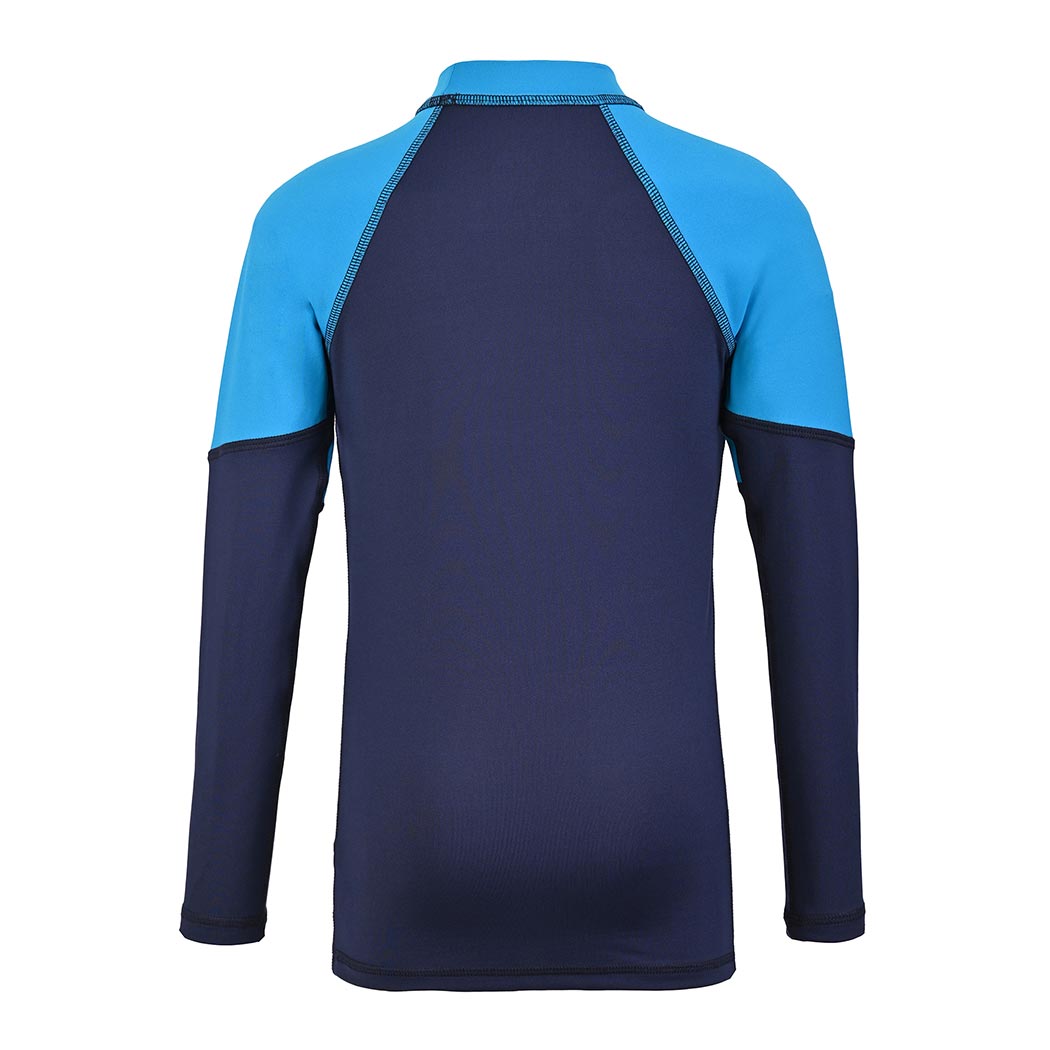 Prepáralo para la aventura con esta wet shirt de niño en color marino, diseñada con un corte ajustado, manga larga y bloques de color en contraste que le dan un look moderno y deportivo. Fabricada en tela de secado rápido con certificación UPF50+, brinda máxima protección contra los rayos solares, ideal para actividades acuáticas y al aire libre. Sus cortes horizontales en mangas y delantero aportan estilo, mientras que el logotipo estampado en el pecho completa este diseño funcional y lleno de energía.