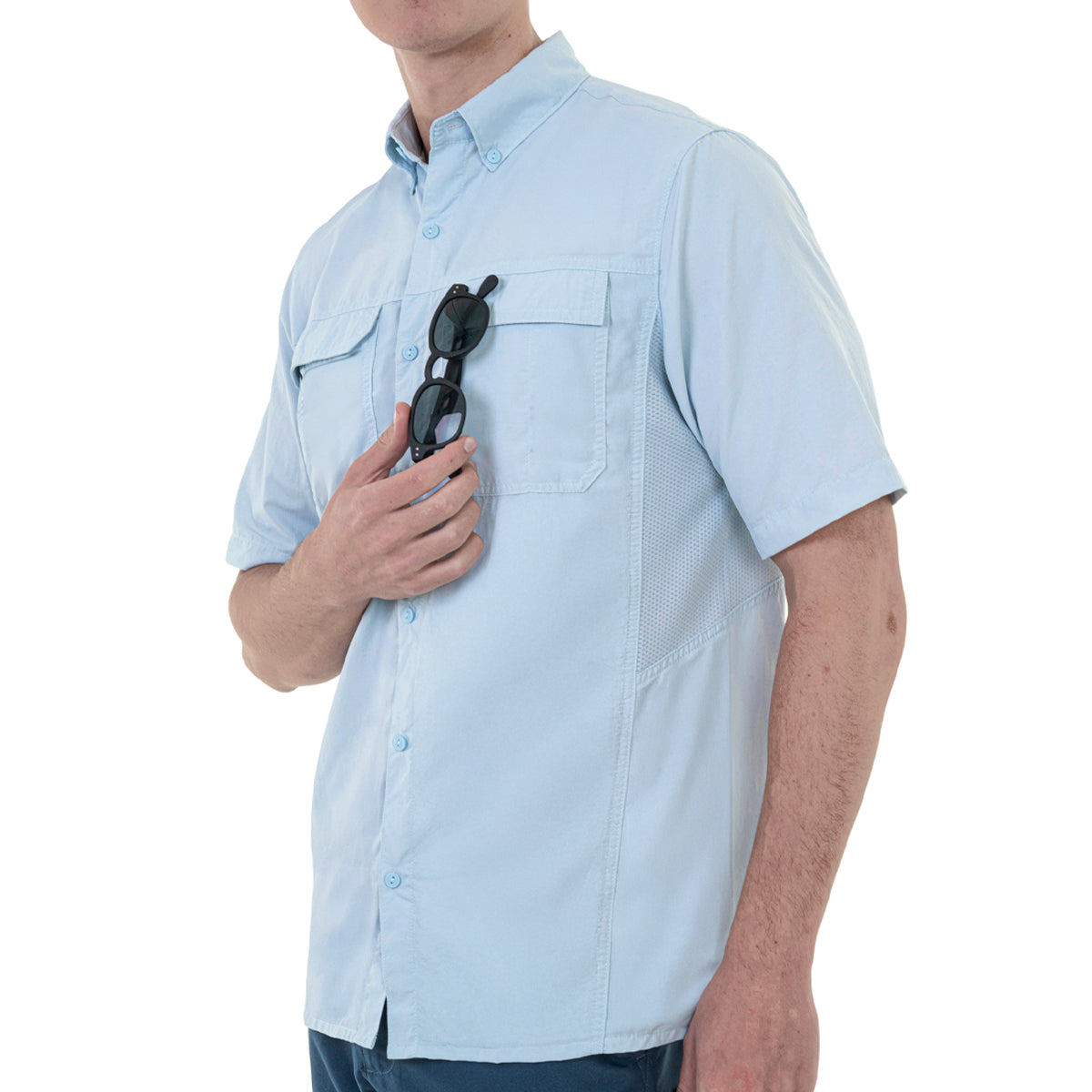 Explora sin límites con la Nueva Camisa Manga Corta Camp para Hombre en color azul claro, diseñada para acompañarte en cada aventura al aire libre, ya sea senderismo, trekking o camping. Su tejido con certificación UPF50+ te protege de los rayos UV, mientras que los costados respirables y la ventilación en la espalda aseguran frescura en condiciones de calor. Incorpora detalles funcionales como ojal para lentes y bolsas de parche que combinan practicidad con un diseño pensado para el movimiento. Una prenda clave para quienes exigen rendimiento y comodidad en cada recorrido.