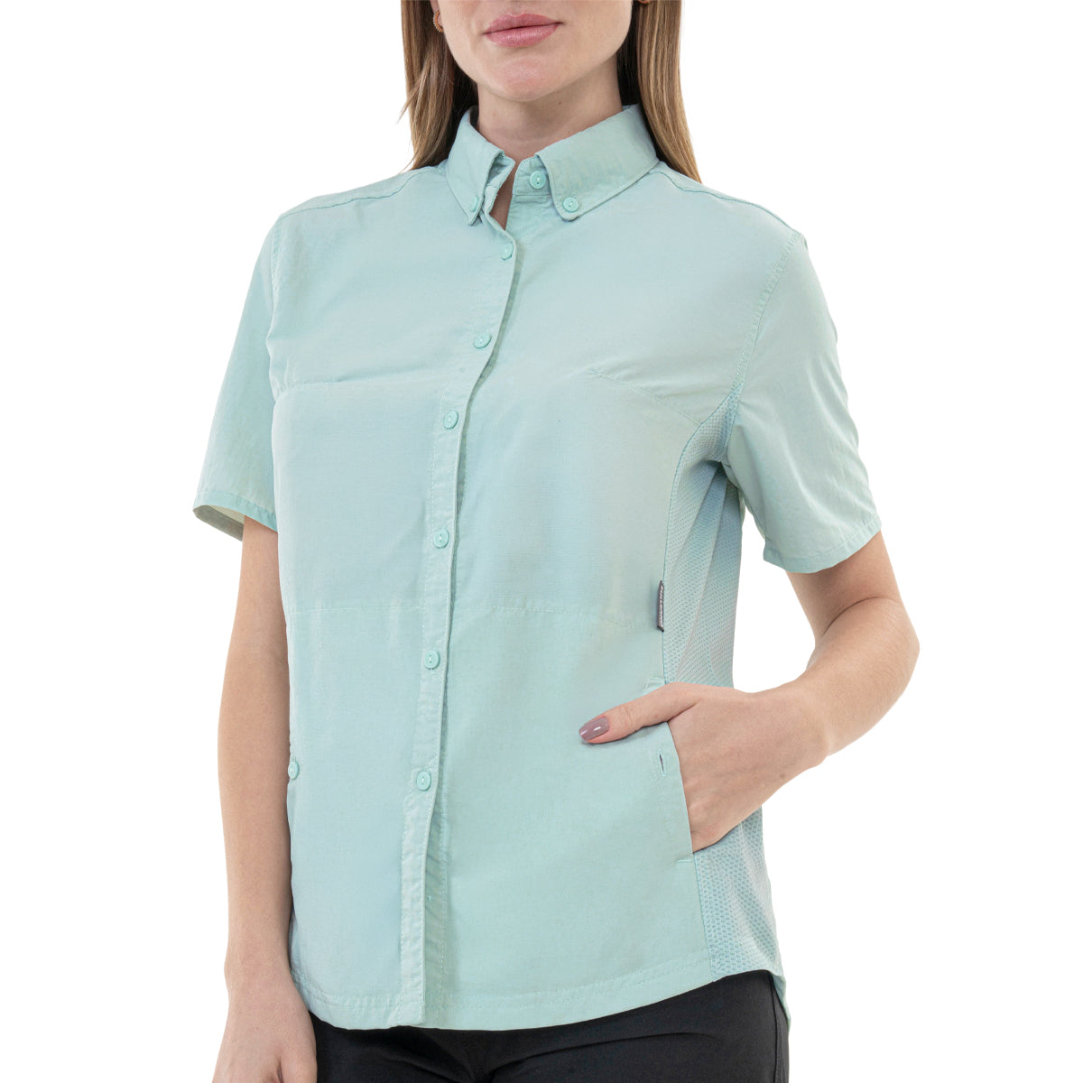 Nueva Camisa de Manga Corta Camp para Mujer en color menta está diseñada para ofrecer un rendimiento superior en entornos outdoor, combinando protección avanzada y funcionalidad técnica. Certificada con UPF50+, proporciona una barrera solar eficaz para exposiciones prolongadas, mientras que su confección con costados respirables y ventilación estratégica en la espalda maximiza la circulación del aire, asegurando un confort térmico óptimo en actividades exigentes como senderismo, trekking o camping. Los bolsillos con botón añaden un elemento práctico y seguro para el almacenamiento, consolidando esta prenda como una pieza esencial para mujeres que buscan equilibrio entre durabilidad, protección y estilo técnico en cada aventura.