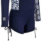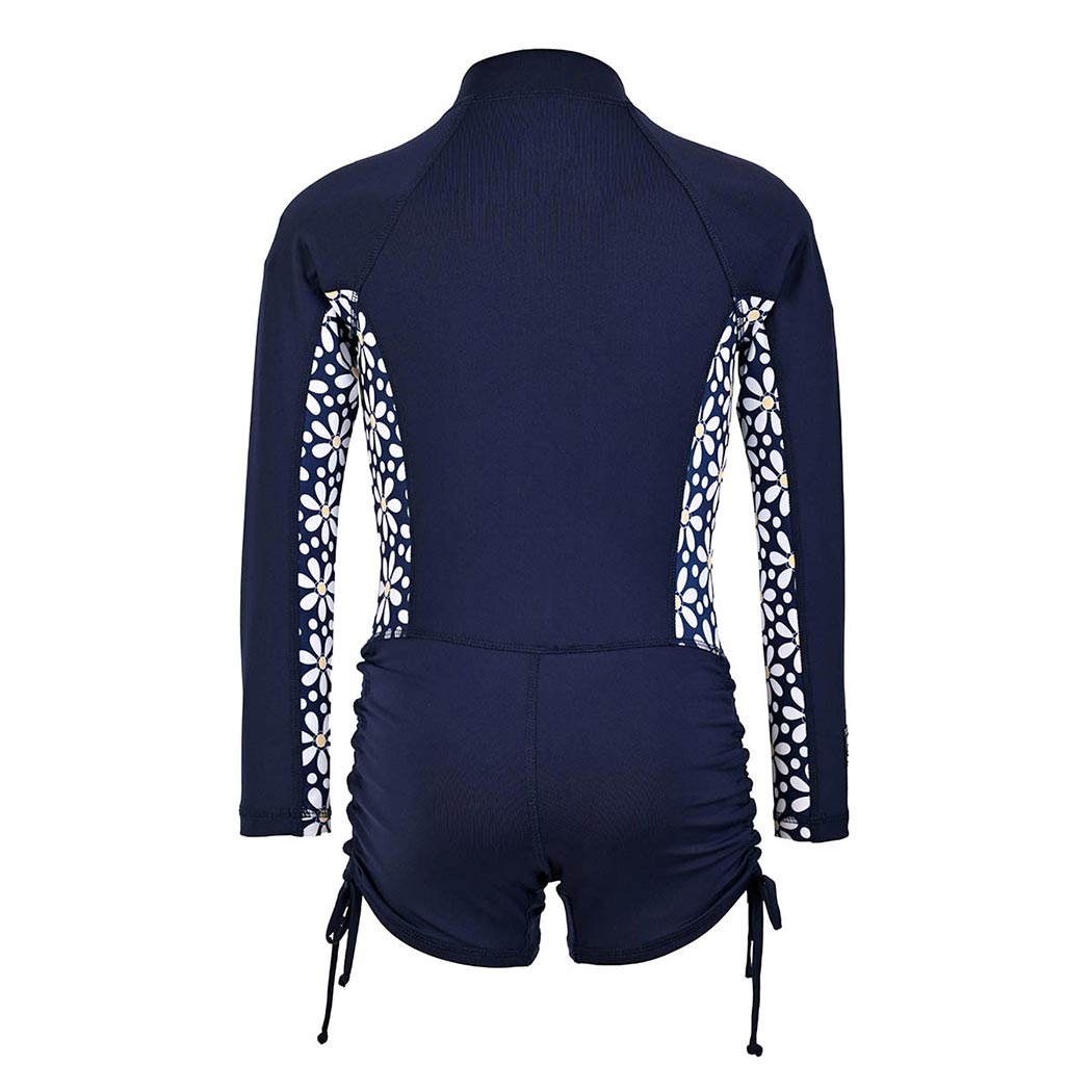 Diseñado para acompañarla con comodidad, estilo y máxima protección en cada aventura bajo el sol, el bodyswim FULLSAND para niña combina funcionalidad y diseño en una sola pieza. Confeccionado en nylon y lycra, ofrece un ajuste cómodo al cuerpo, tela ligera y fresca, además de secado rápido para mayor practicidad dentro y fuera del agua. Su protección solar certificada UPF 50+ bloquea más del 98% de los rayos UV y está recomendada por The Skin Cancer Foundation, brindando mayor confianza para disfrutar playa, alberca y actividades al aire libre. Su diseño incorpora cierre frontal en color marino, short simulado con forro, elevadores con jareta para ajustar el largo en costados, estampado Margaritas en mangas y costados del cuerpo, vivos en color contraste y detalles decorativos que le dan un look alegre, cómodo y lleno de personalidad.