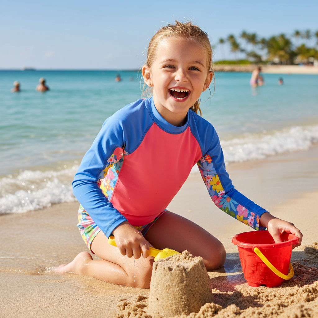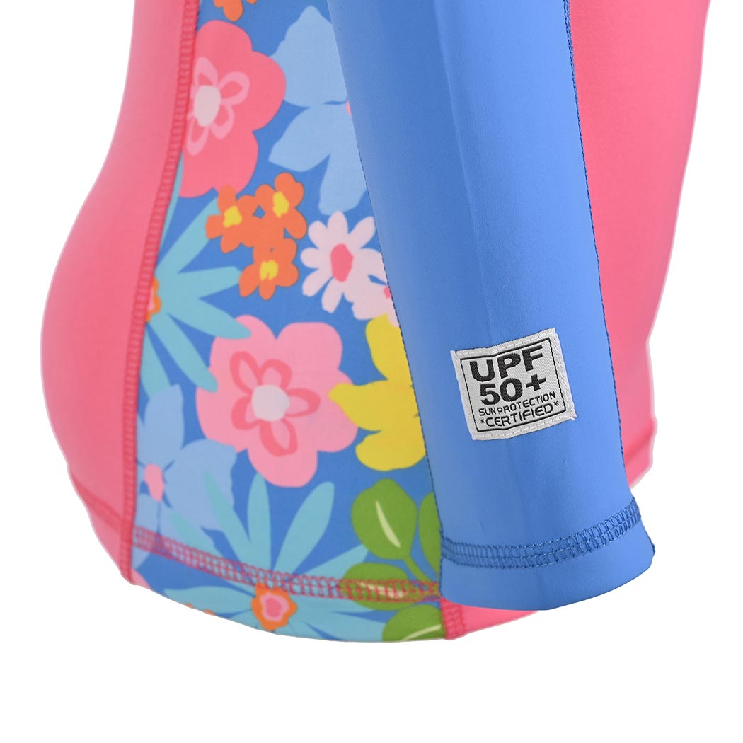 ¡Que el sol no sea un problema! Esta playera rashguard de manga larga ofrece protección solar certificada UPF50+ para que tu niña disfrute sin preocupaciones. Confeccionada en tela de secado rápido, perfecta para aventuras acuáticas. El color salmón vibrante luce aún más bonito con la etiqueta TAB bordada en el costadillo delantero y los detalles del estampado Jardín Celeste que adornan los costados del cuerpo y mangas. Seguridad, comodidad y estilo en cada movimiento.