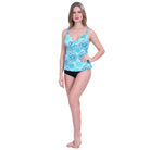 Disfruta de un look cómodo, versátil y favorecedor con el tankini Coralina, diseñado para acompañarte con estilo en cada momento bajo el sol. Su diseño con forro, espalda recta, tirantes ajustables y copa removible brinda un ajuste seguro y adaptable que se ajusta naturalmente a tu cuerpo, ofreciendo mayor comodidad y libertad de movimiento. Confeccionado en nylon y spandex con impresión digital estampado Mar, combina un acabado moderno con beneficios funcionales como secado rápido, resistencia a hipocloritos de alberca, tecnología antibacterial, anti olores y materiales amigables con el ambiente. Ideal para disfrutar la playa o la alberca con frescura, confort y un estilo sofisticado.