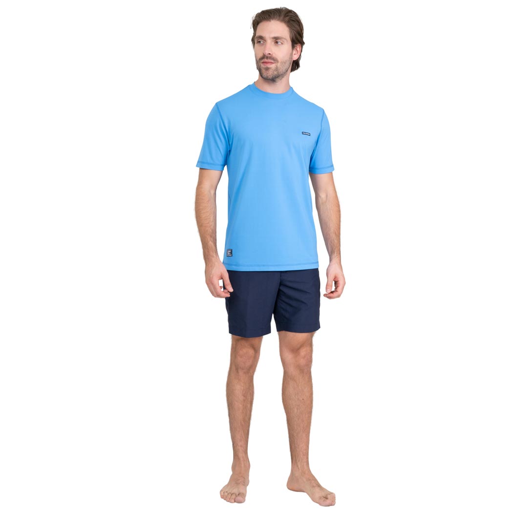 Diseñada para quienes no dejan que nada frene sus planes al aire libre. Esta playera de hombre de manga corta, con certificación UPF50+ que bloquea los rayos UV sin sacrificar comodidad. Presume nuestro logotipo bordado en el pecho con un acabado limpio y minimalista, mientras que el detalle de tapacosturas en contraste en el cuello interior agrega ese toque de personalidad. En azul perry versátil, es la compañera perfecta para cualquier aventura. Protección solar que se siente bien.