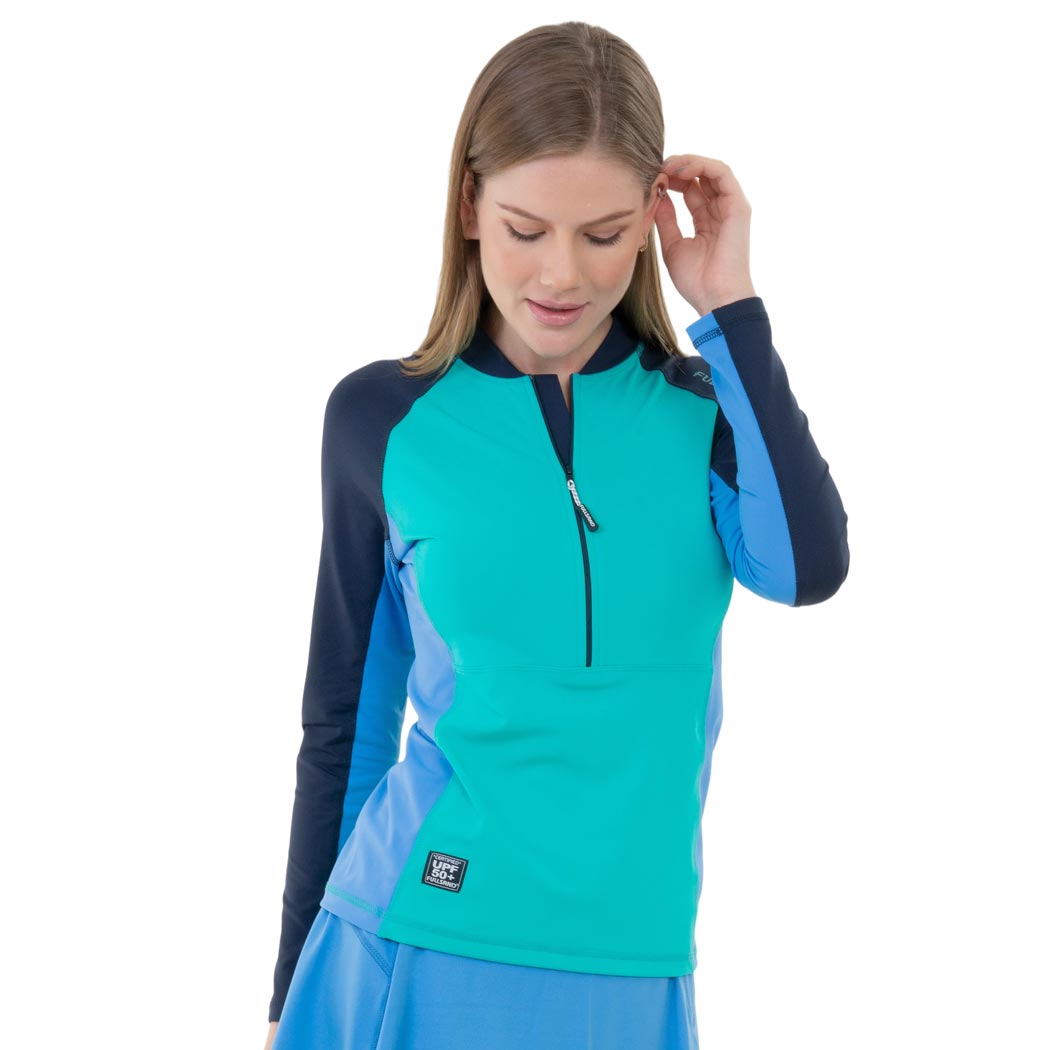 FULLSAND Playera Cuello Alto Con Cierre Mujer Con Protección Solar Certificada.