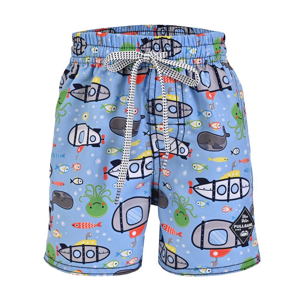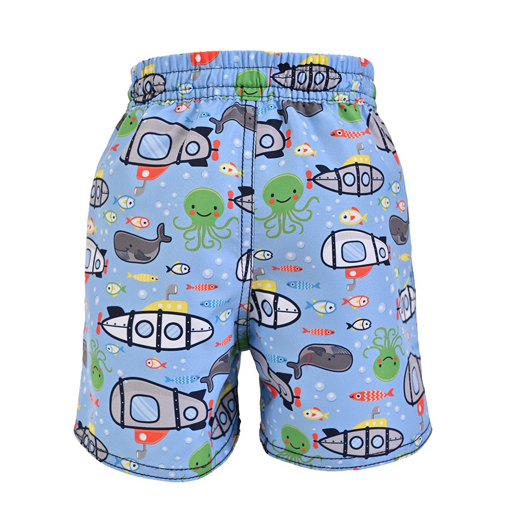Short estampado para bebé niño diseñado para brindar confort y funcionalidad en actividades acuáticas, confeccionado con pretina elástica y jareta ajustable que aseguran un ajuste preciso y cómodo; incorpora calzón interno de tela calada para mayor frescura y soporte, mientras que su atractivo estampado de buceo estimula el juego y la exploración. Detalle de etiqueta decorativa en pierna izquierda que aporta un acabado distintivo de marca. Ideal para playa, piscina o cualquier entorno acuático.