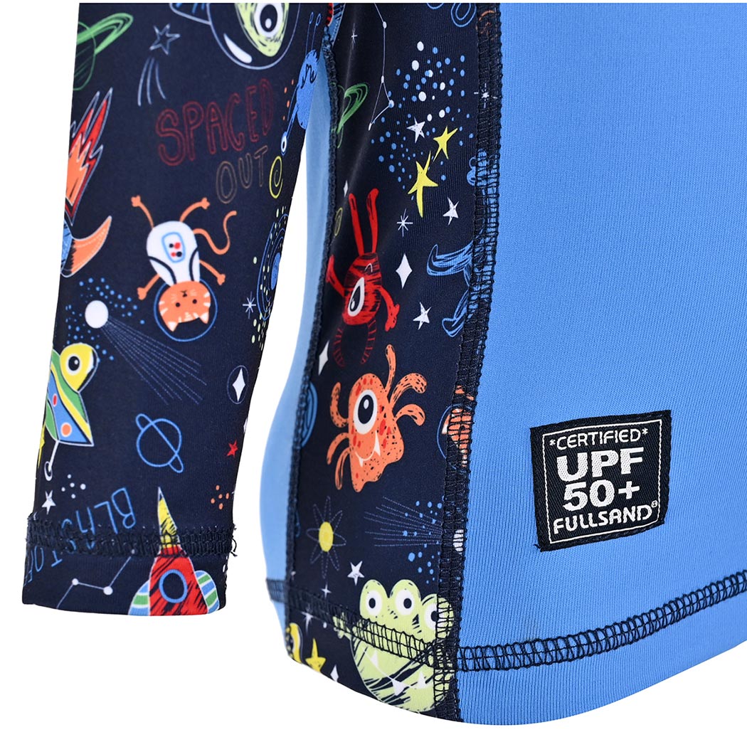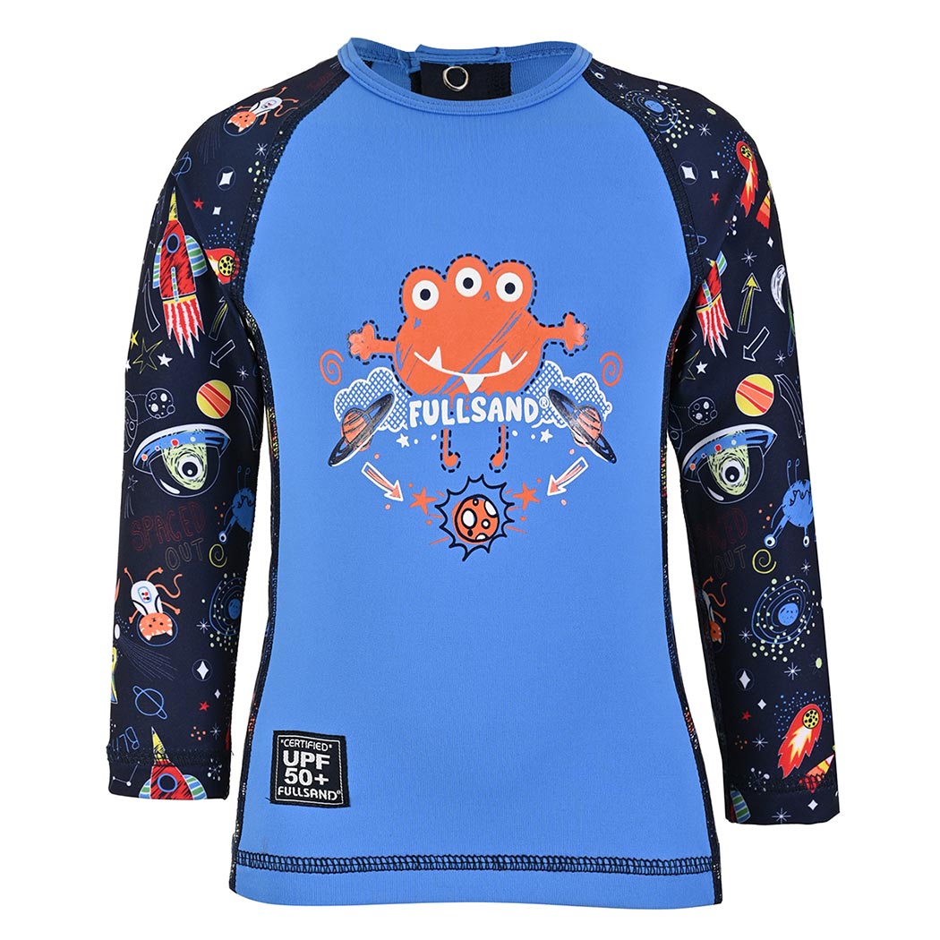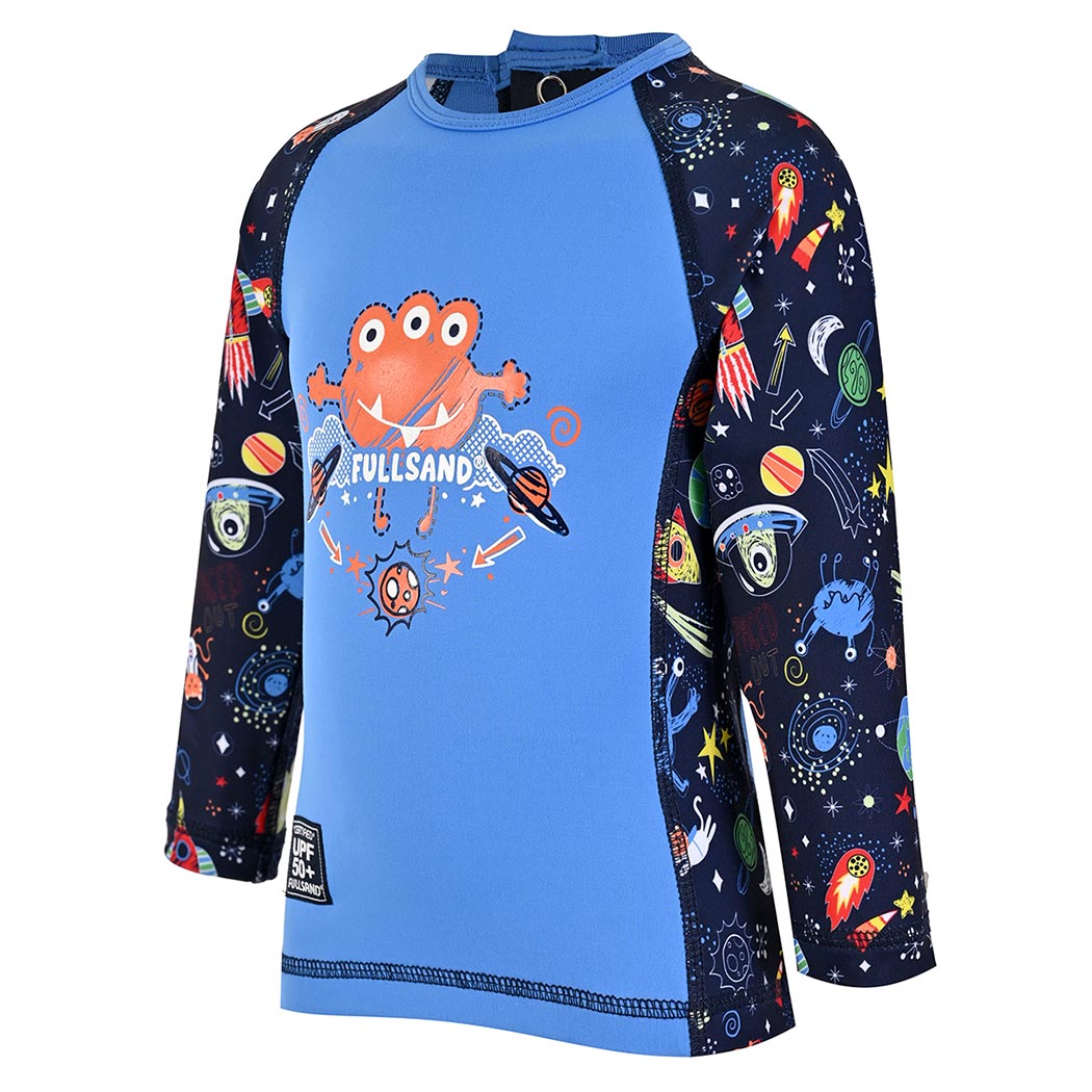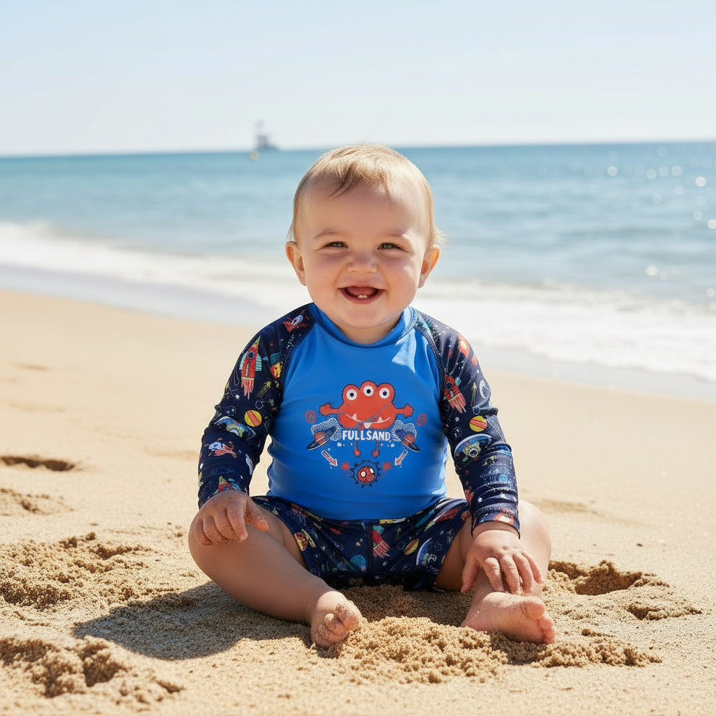 Este adorable wet de manga larga para bebé está pensado para acompañar sus primeros chapoteos con comodidad, seguridad y mucha diversión. En un encantador color azul Perry, combina mangas y laterales en tela sublimada con un alegre motivo de marcianitos multicolor sobre fondo marino, que llenan la prenda de color y fantasía. Su cuello redondo y confección suave abrazan la piel de tu pequeño sin incomodarlo, mientras que los botones de presión en la espalda permiten un cambio rápido y práctico, perfecto para esos momentos en los que cada segundo cuenta. Al frente, un simpático marcianito en figuras divertidas y nuestra firma Fullsand® dan el toque final a una prenda tan tierna como funcional. Con protección solar UPF50+, este wet cuida su piel bloqueando más del 98% de los rayos UV. Está confeccionado con nuestra tela especial: fresca, ligera, de secado rápido y que no guarda olores, ideal para días de alberca, playa o juegos bajo el sol. Un diseño que protege, acompaña y celebra cada nueva aventura de tu bebé, porque sus primeros momentos al agua merecen lo mejor.
