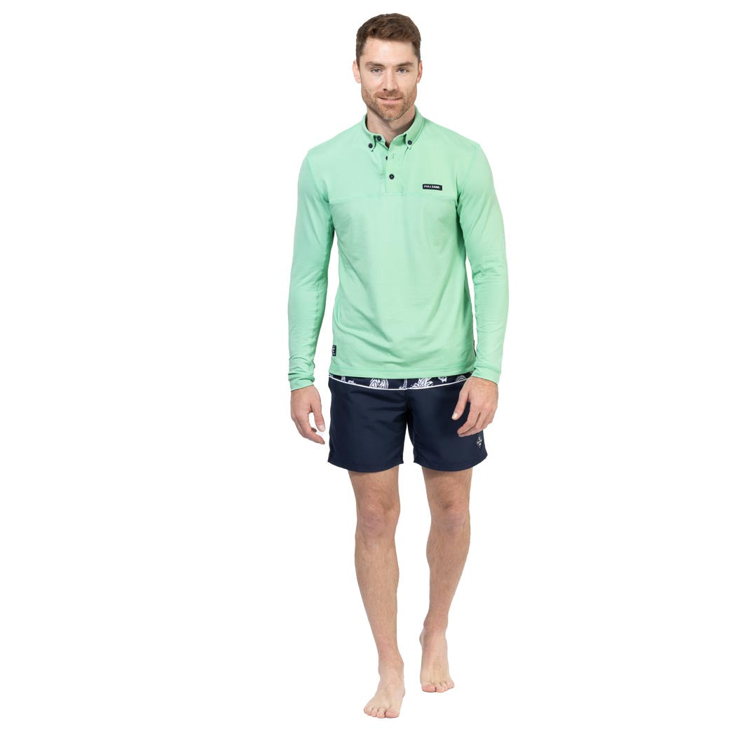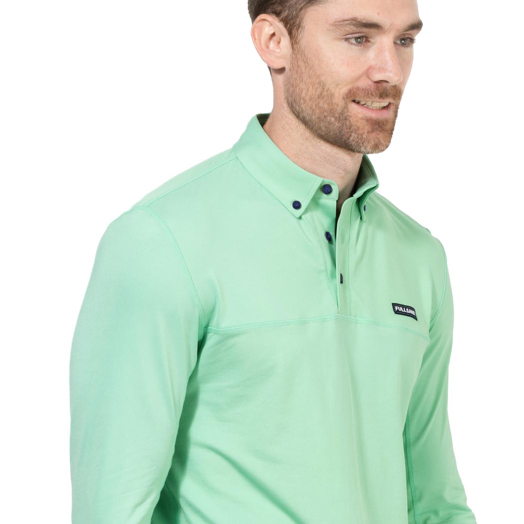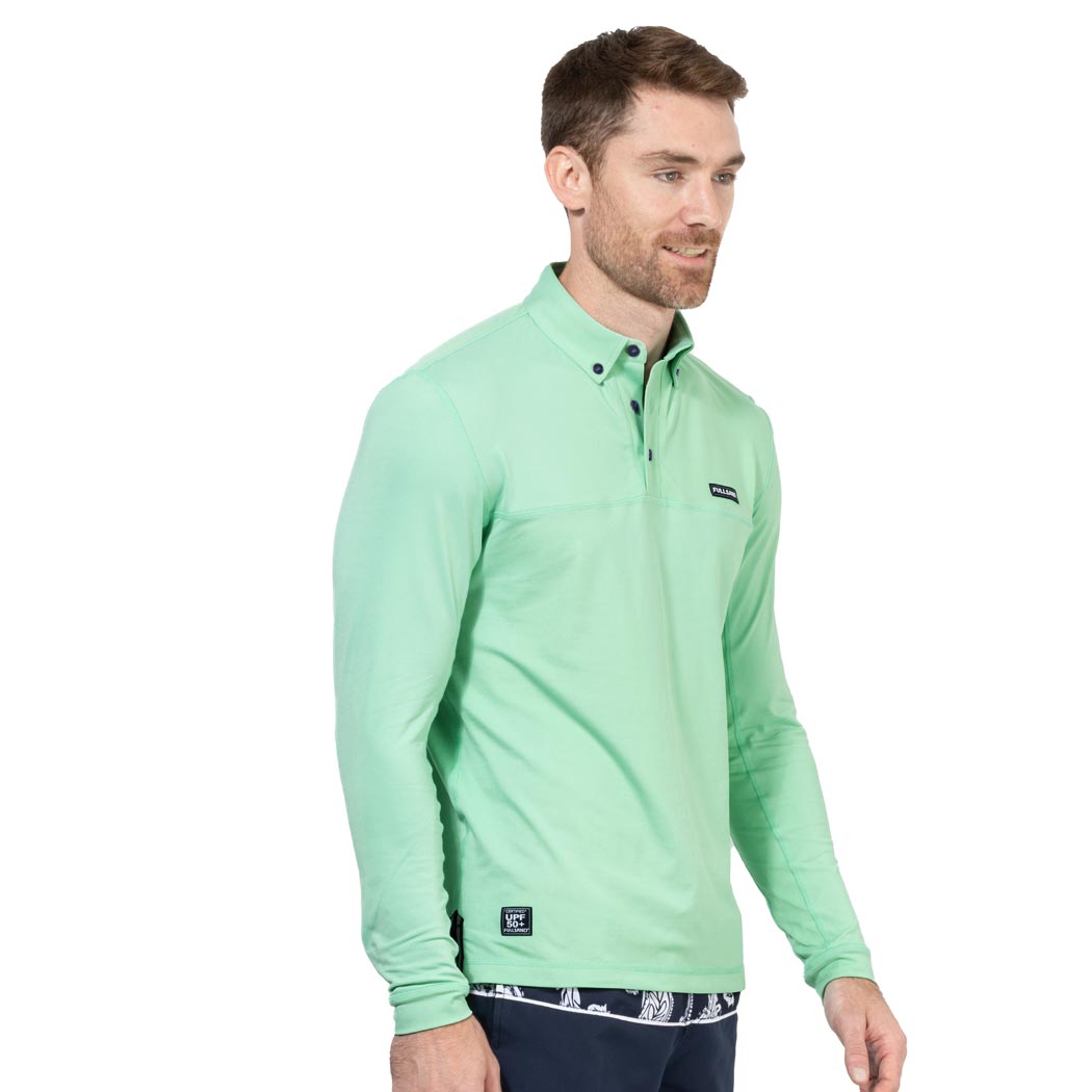 Polo manga larga piqué para caballero en color verde, con botones en cuello y pecho, con nuestra firma en etiqueta bordada tab en pecho lado izquierdo, ideal para caminatas por la ciudad, el bosque y días soleados ya que cuenta con nuestra recomendación UPF50+ que mantendrá tu piel protegida de los rayos solares. De tela fresca, suave y ligera de secado ultra rápido, que no guarda olores, de ajuste relax fit, para que te sientas completamente cómodo en cualquiera de tus actividades.
