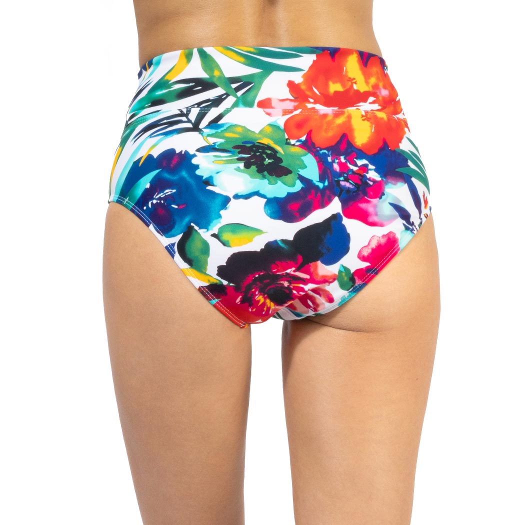 Calzón talle alto que estiliza la figura, corte en bajo vientre con control abdominal, cobertura media en parte trasera.