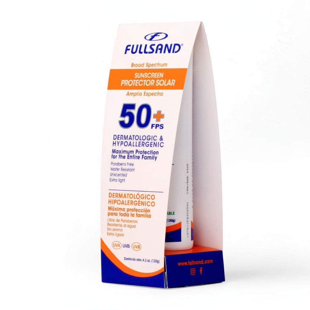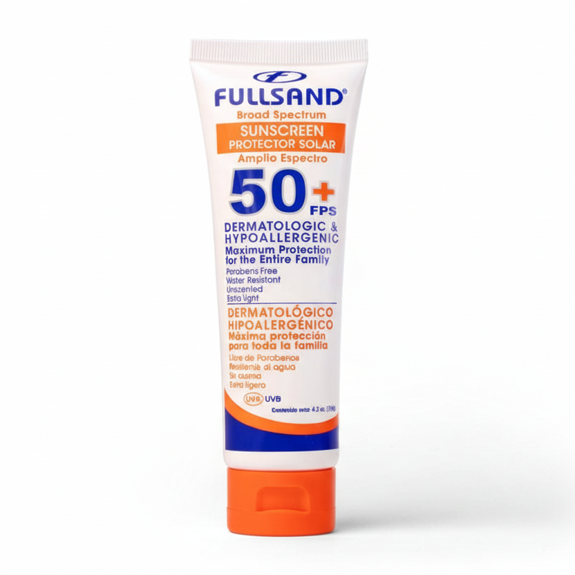 FULLSAND Bloqueador En Crema FPS 50+, Protector Solar Certificado Para Todo El Cuerpo y Tipo de Piel 120G.