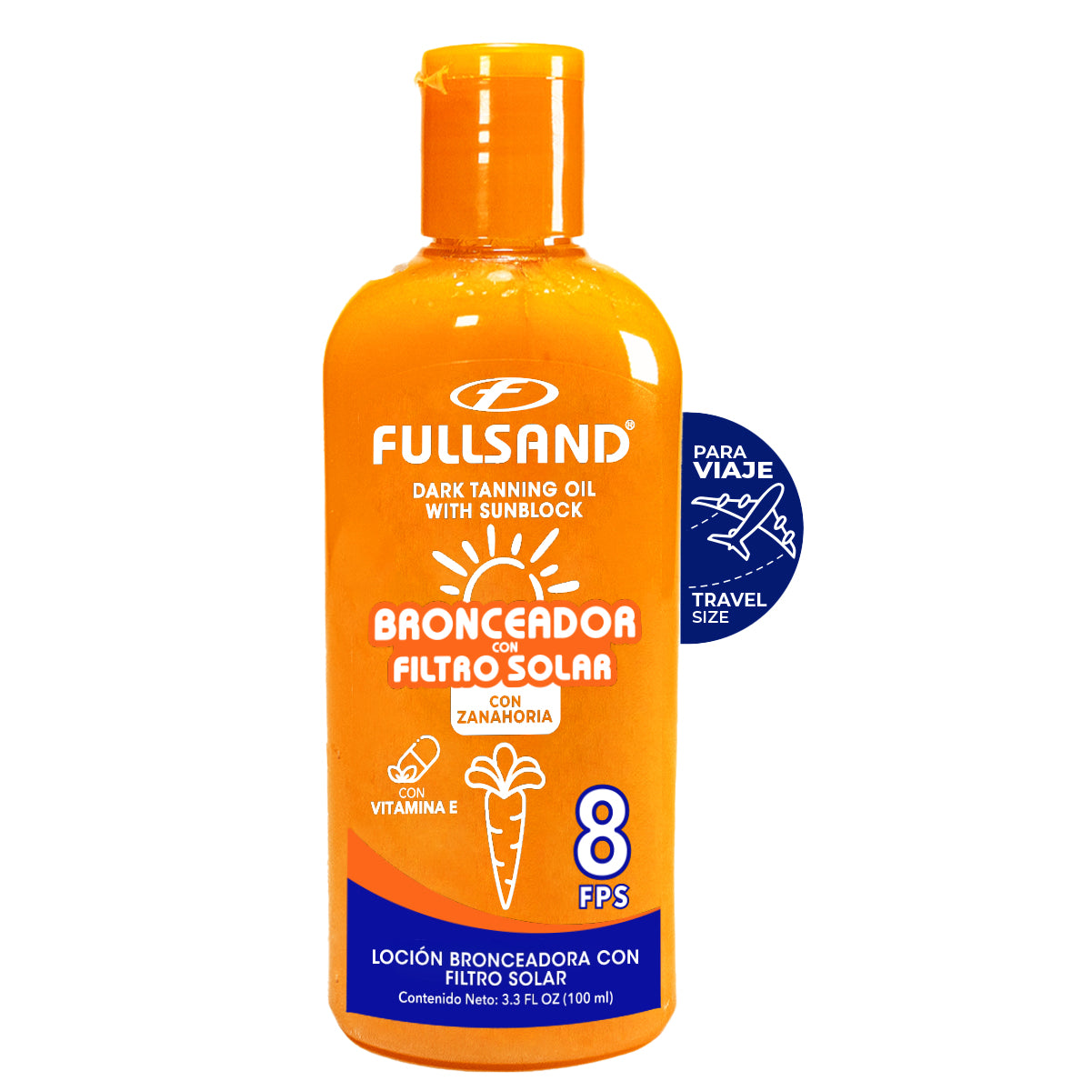FULLSAND Bronceador Para Viaje Con Filtro Solar FPS 8 Con Zanahoria, Para Todo El Cuerpo y Tipo De Piel 100 ML