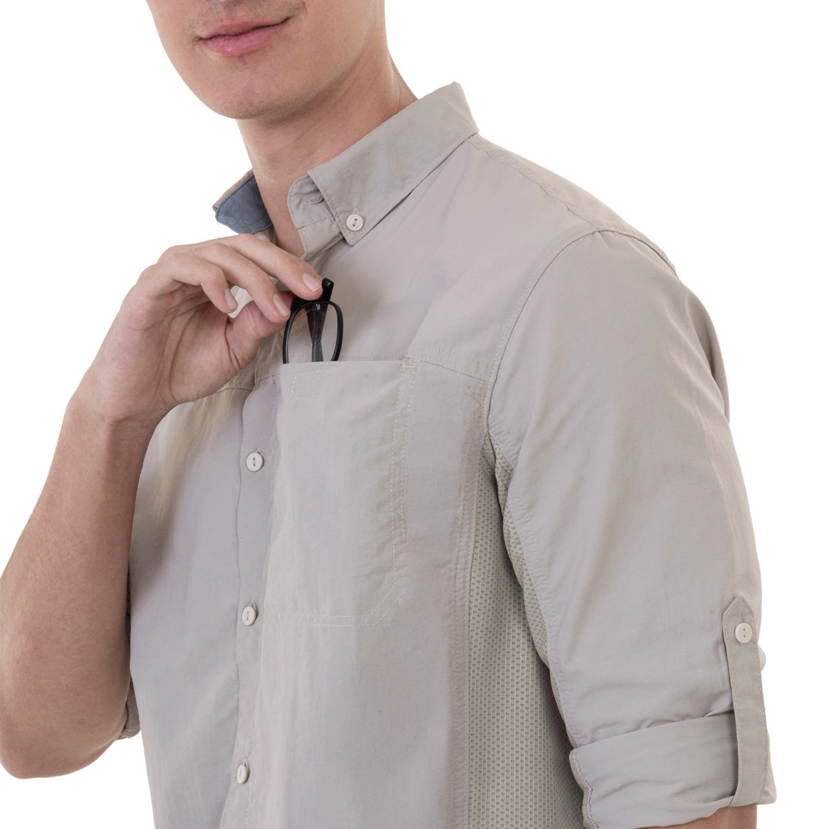 La Camisa Hunter para hombre redefine la ropa outdoor combinando tecnología, confort y estilo. Confeccionada en nylon con certificación UPF50+, te brinda protección total contra los rayos solares mientras mantiene una sensación ligera y fresca. Su diseño inteligente integra ventilación en espalda, paneles respirables en los costados y bolsa oculta funcional, ideal para acompañarte en largas jornadas de senderismo, trekking o camping. Los detalles como el elevador de mangas y el contraste interior en cuello y puños reflejan un acabado premium pensado para el aventurero exigente. Disponible en color arena, es la camisa perfecta para quienes buscan rendimiento y elegancia en la naturaleza.