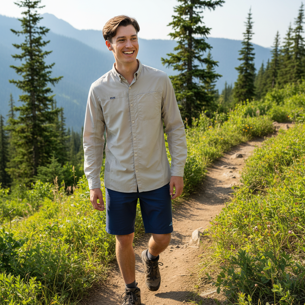 La Camisa Hunter para hombre redefine la ropa outdoor combinando tecnología, confort y estilo. Confeccionada en nylon con certificación UPF50+, te brinda protección total contra los rayos solares mientras mantiene una sensación ligera y fresca. Su diseño inteligente integra ventilación en espalda, paneles respirables en los costados y bolsa oculta funcional, ideal para acompañarte en largas jornadas de senderismo, trekking o camping. Los detalles como el elevador de mangas y el contraste interior en cuello y puños reflejan un acabado premium pensado para el aventurero exigente. Disponible en color arena, es la camisa perfecta para quienes buscan rendimiento y elegancia en la naturaleza.