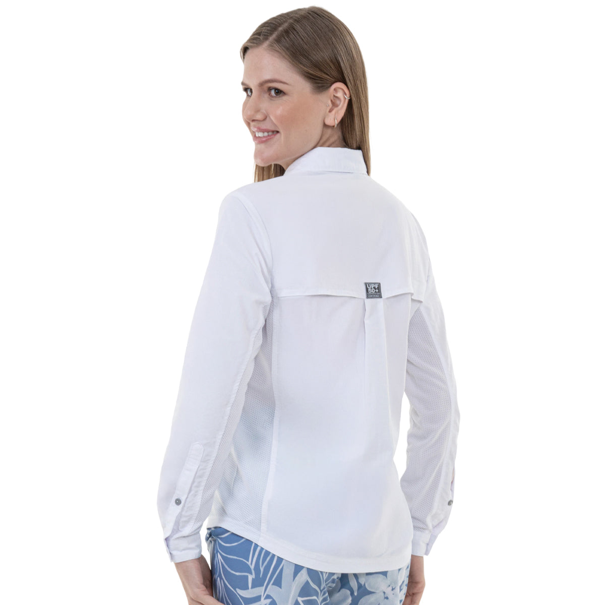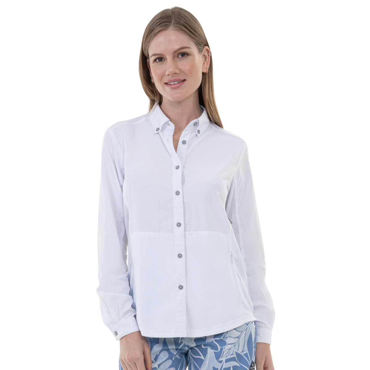 Prepárate para la aventura con esta camisa manga larga safari para mujer, hecha de nylon y en un vibrante blanco. Con protección solar UPF50+, es tu aliada perfecta para senderismo, trekking y camping. Disfruta de la frescura que ofrecen sus costadillos transpirables y la ventilación en la espalda, mientras tus pertenencias permanecen seguras en los bolsillos con cierre. ¡Explora con estilo y comodidad en cada paso!