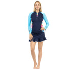 Que esta verano solo te ocupes de tus tiempos de descanso en la playa o la alberca, y de disfrutar sin preocuparte por el sacrificar estilo, por eso te presentamos esta hermosa falda skort en color marino liso, que cuenta con escarolas y dobladillo en contrastante blanco que le da ese toque de elegancia a la prenda, cuenta con pretina ancha y jaretas internas para un mejor ajuste a tu cuerpo, también cuenta con un short interno para que puedas desenvolverte en todas tus actividades de forma libre o divertida, recomendada para actividades acuáticas, esta prenda es de secado ultra rápido, además cuenta con nuestra recomendación UPF50+ que mantendrá tu piel protegida de los rayos solares, de tela suave y ligera que no guarda olores.