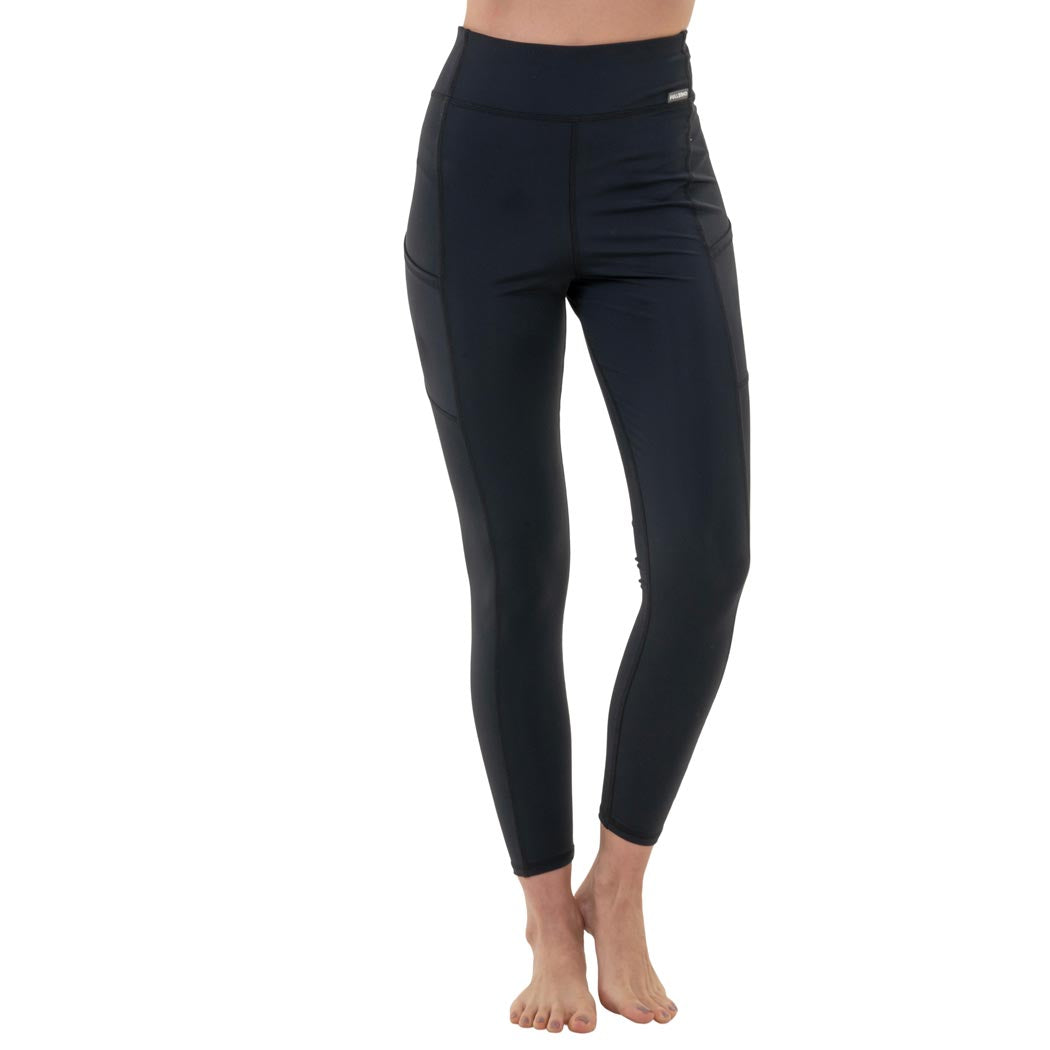 Te presentamos este hermoso leggin en color negro liso con pretina alta que amolda tu cintura, con nuestra firma en etiqueta bordada tab en pierna lado izquierdo, cuenta con bolsas super prácticas en ambas piernas, donde puedes guardar objetos pequeños o hasta tu celular, confeccionado con tela fresca y ligera que es de secado rápido, esta prenda cuenta con nuestra recomendación UPF50+ que te mantendrá protegida de los rayos dañinos UV.